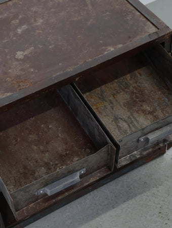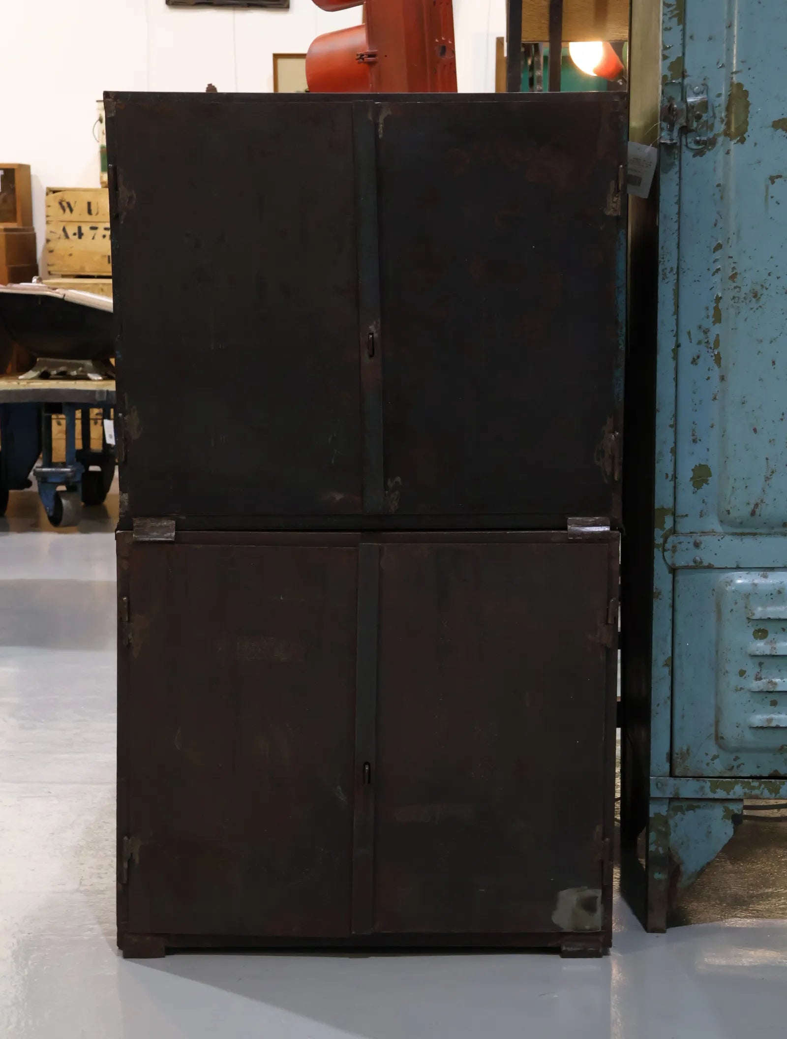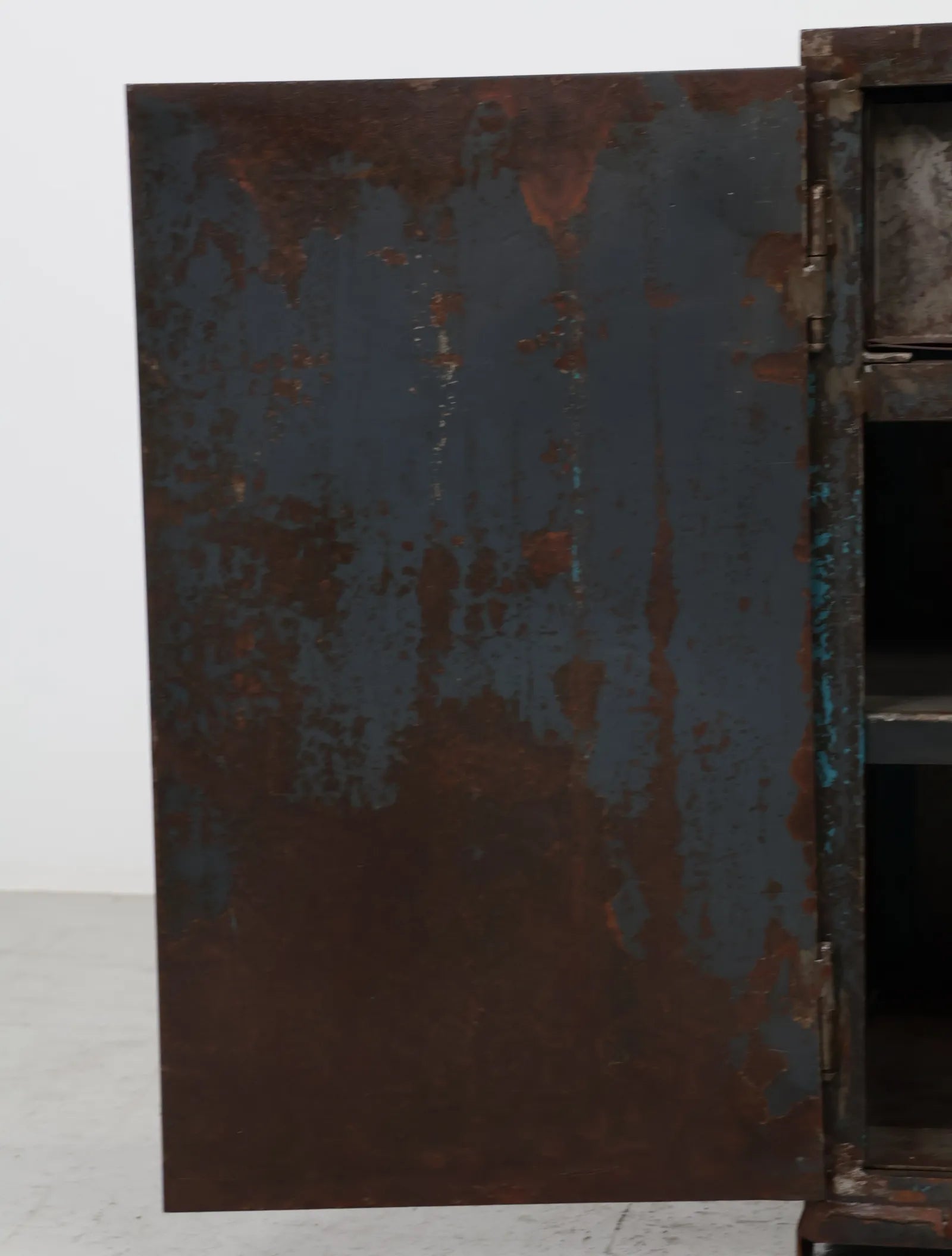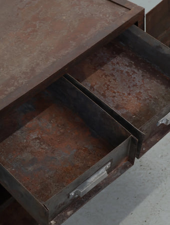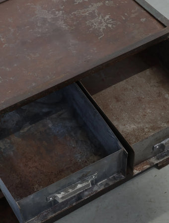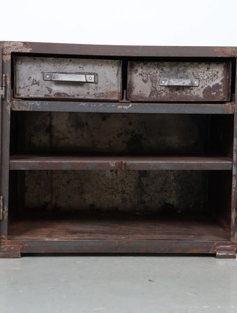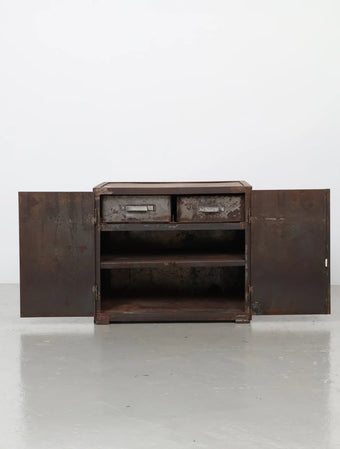 シャビーなサビ感、経年変化共に雰囲気抜群のインダストリアルなメタルキャビネット。