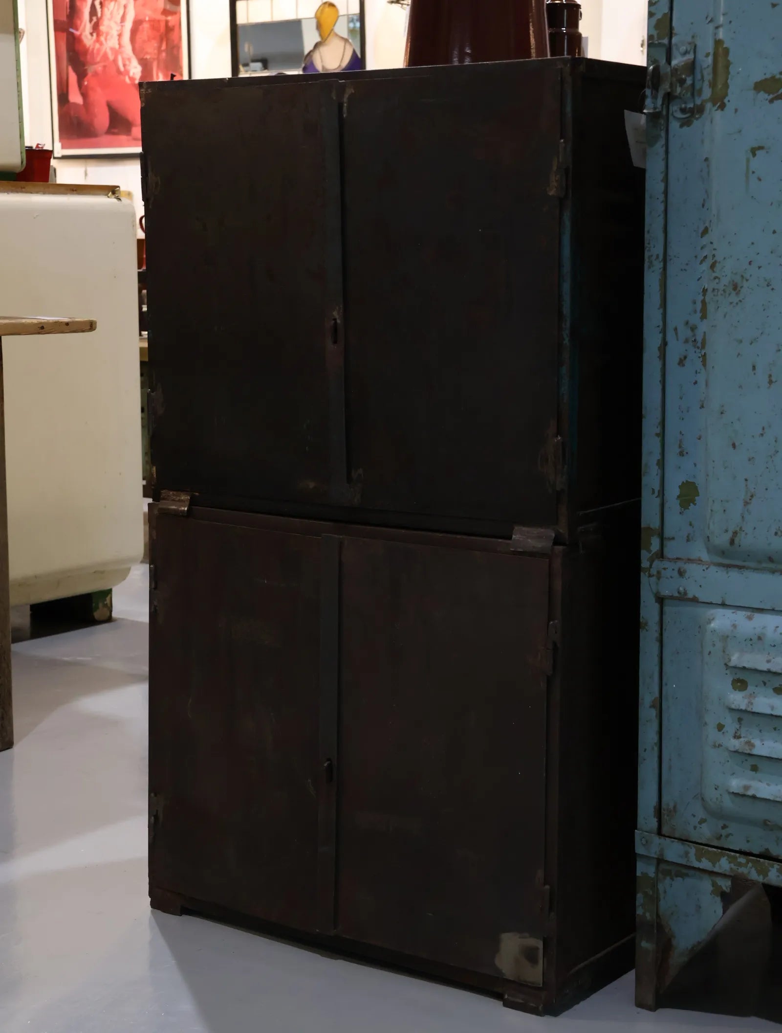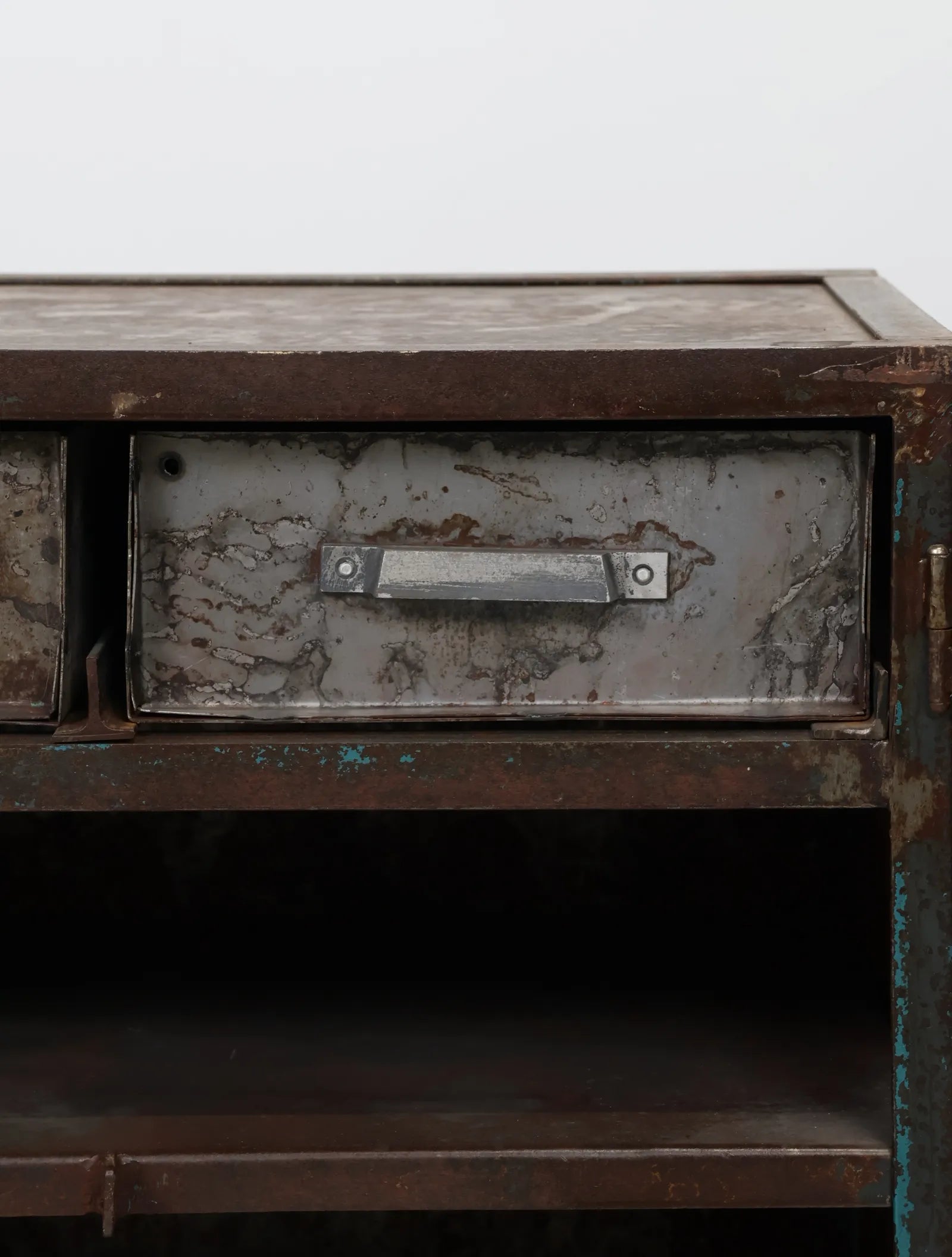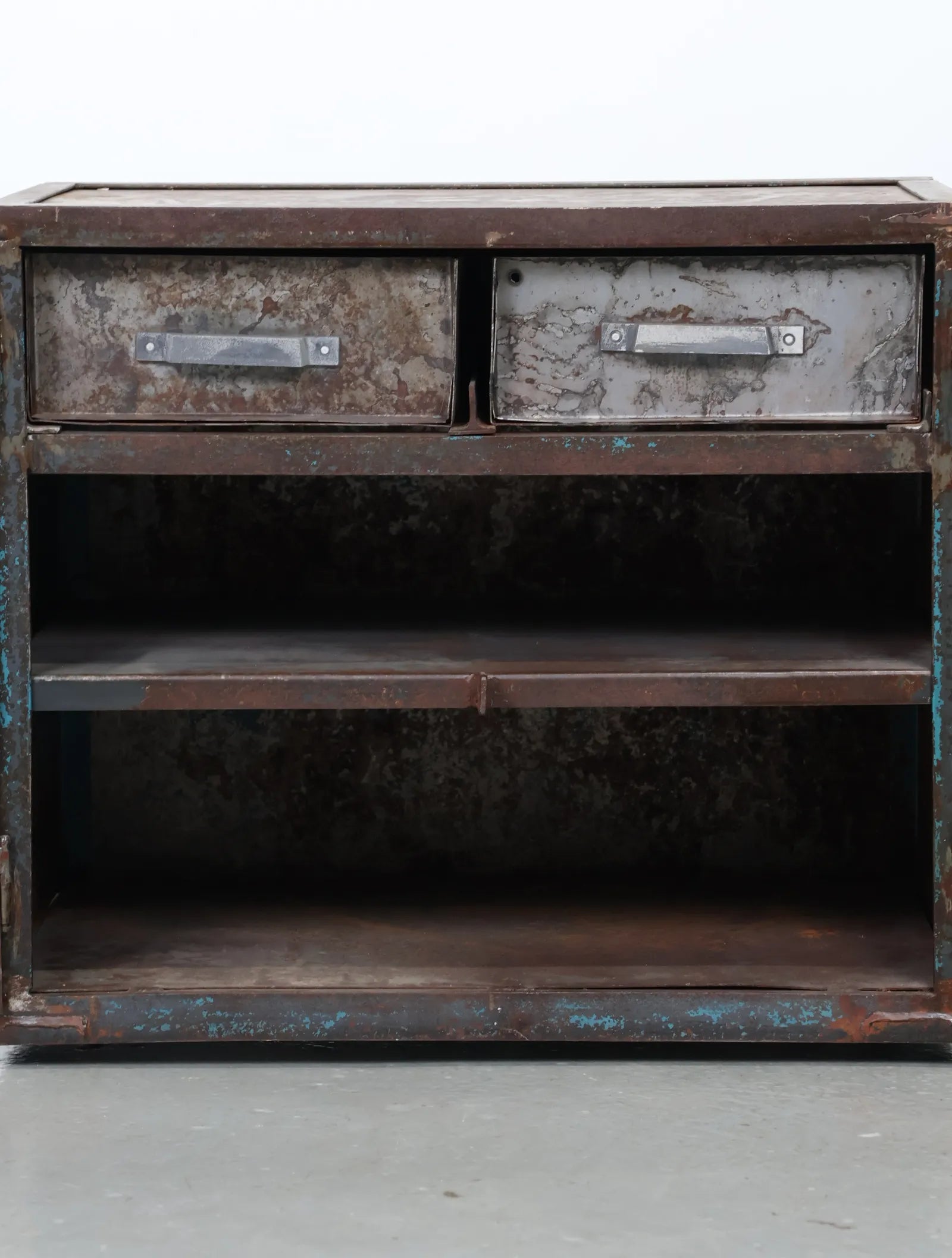 シャビーなサビ感、経年変化共に雰囲気抜群のインダストリアルなメタルキャビネット。