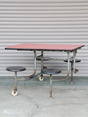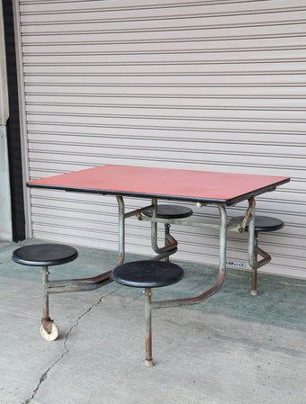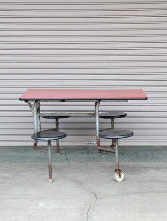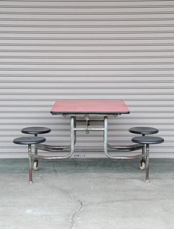 1980年代 ヴィンテージ メタルフレーム プラスチック カフェテリア テーブル チェア イス