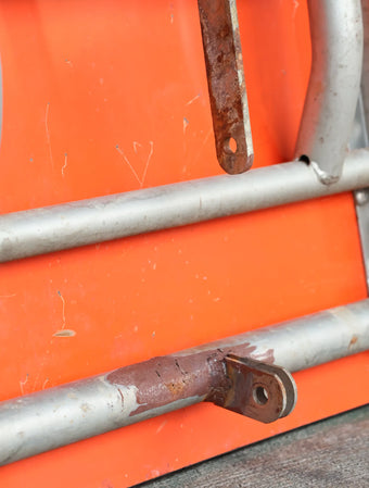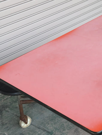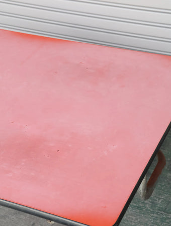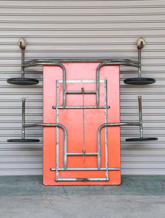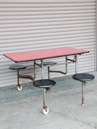 ヨーロッパより買い付けました1980年代のメタルフレームプラスチックカフェテリアテーブル チェアです。