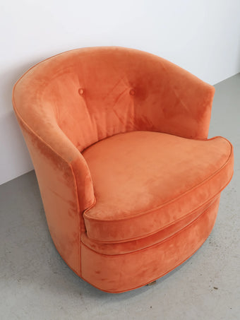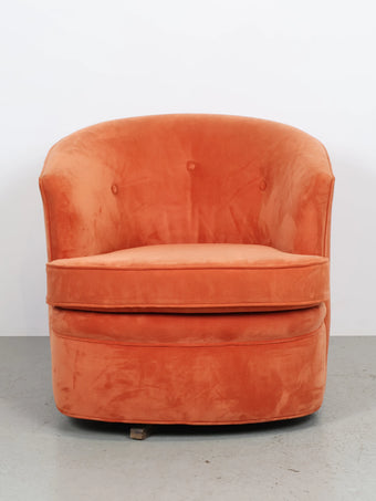 アメリカより買い付けました1960年代-70年代のオレンジベルベットバレルバックシングルソファです。