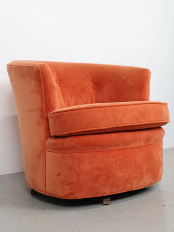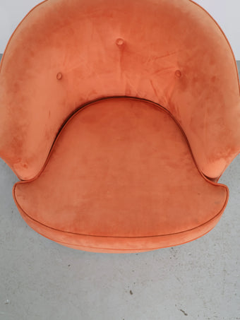 1960 - 70年代 ヴィンテージ オレンジベルベット バレルバック シングルソファ