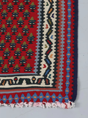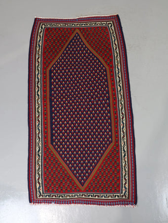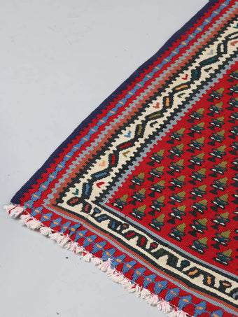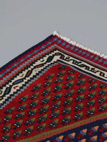 イランで100年程前に人の手によって丁寧に織られ、その細かさから優しさや暖かさを感じることのできるラグ / キリムとなっております。