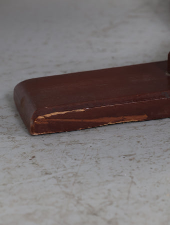 バーガンディーのようなカラーと木製の台座がクラシックな雰囲気漂うデザイン。