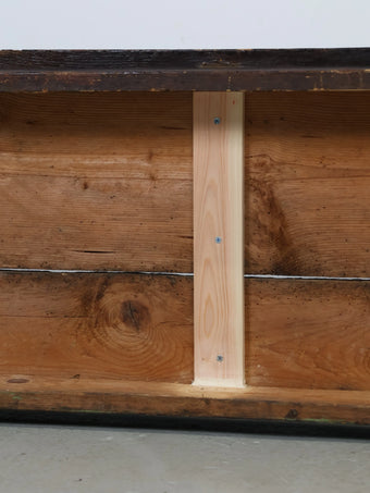 実際に教会で使用されていた重厚感のある4人掛けの大型ベンチで、ペイントやウッドの経年変化による味わい深い表情が良い雰囲気です。