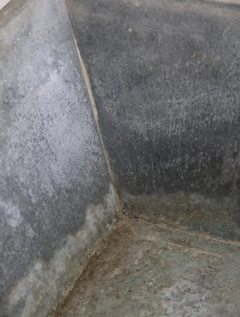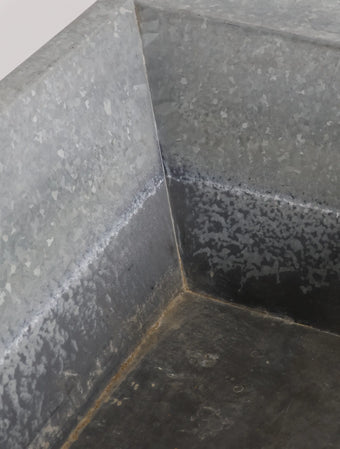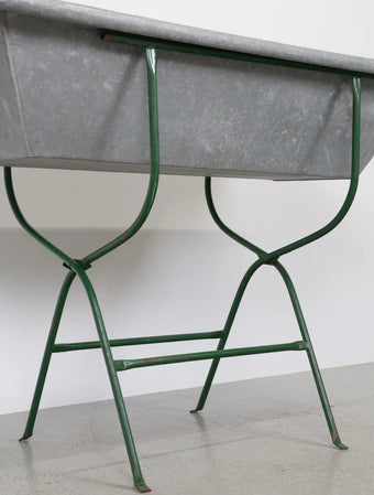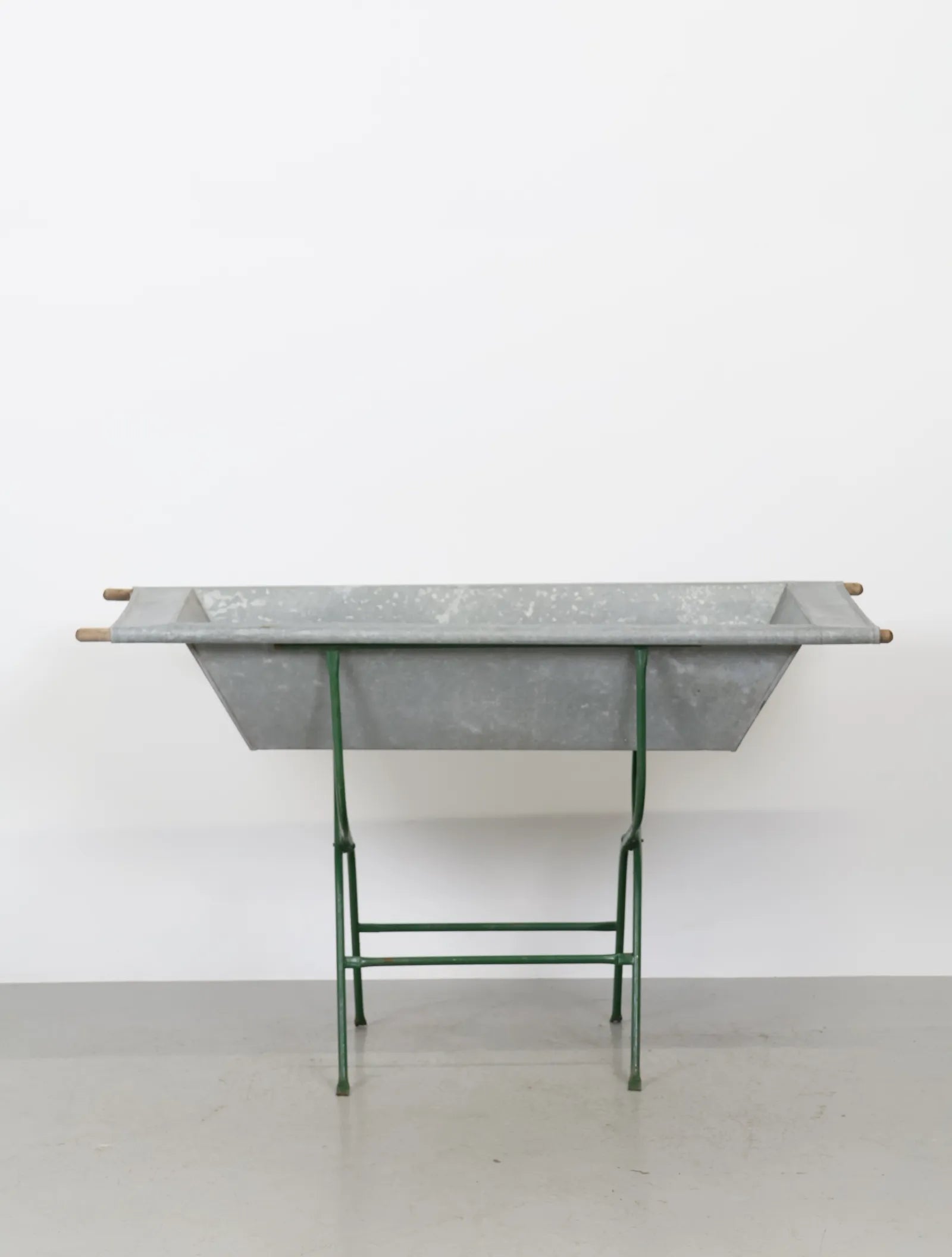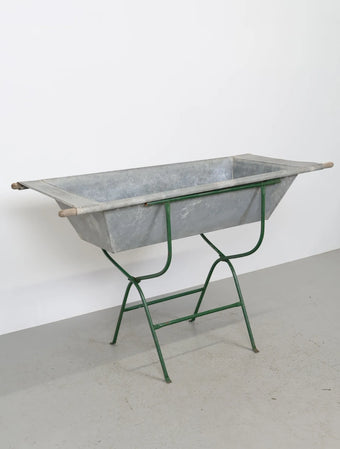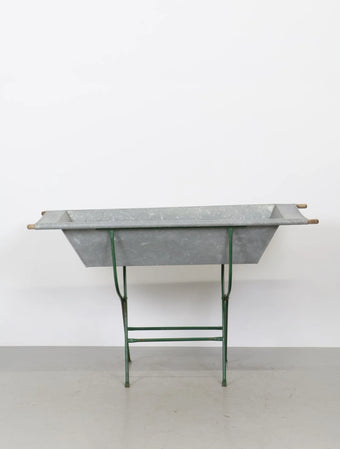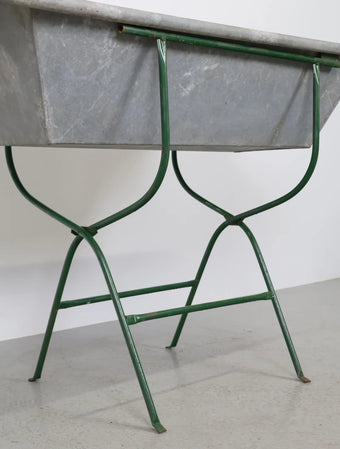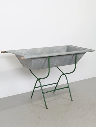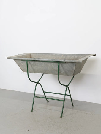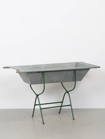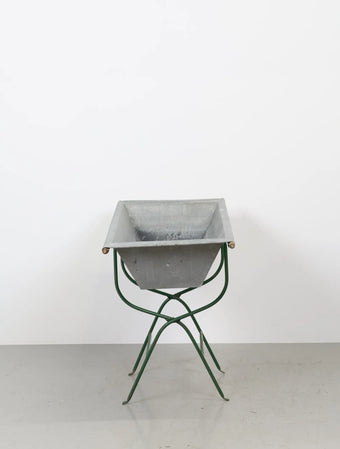 味わい深い亜鉛メッキのタブに脚元はアイアンスタンド付き。