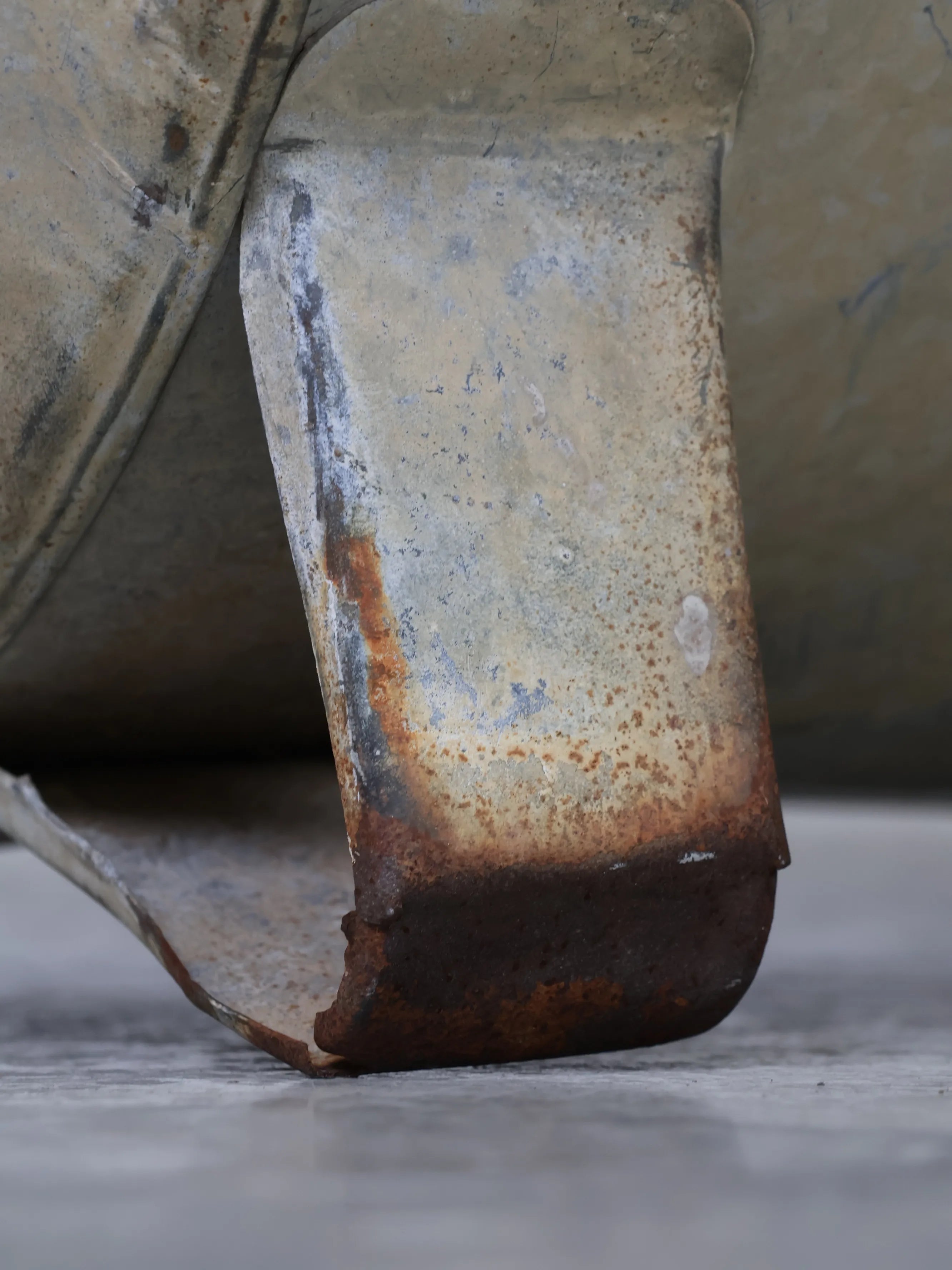 長く実用されてきたことで生まれた、表面のムラや酸化、細かな傷や錆跡など、均一ではない金属の風合いがとても美しく、工業製品でありながらどこか温かみを感じさせる佇まい。