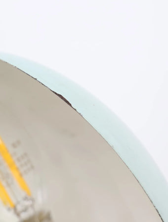 プレートのような浅いシルエットのシェードと淡いブルーが特徴的なデザイン。