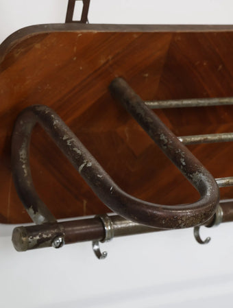 ヨーロッパより買い付けました1950年代のウッドベースメタルフレームウォールラックです。