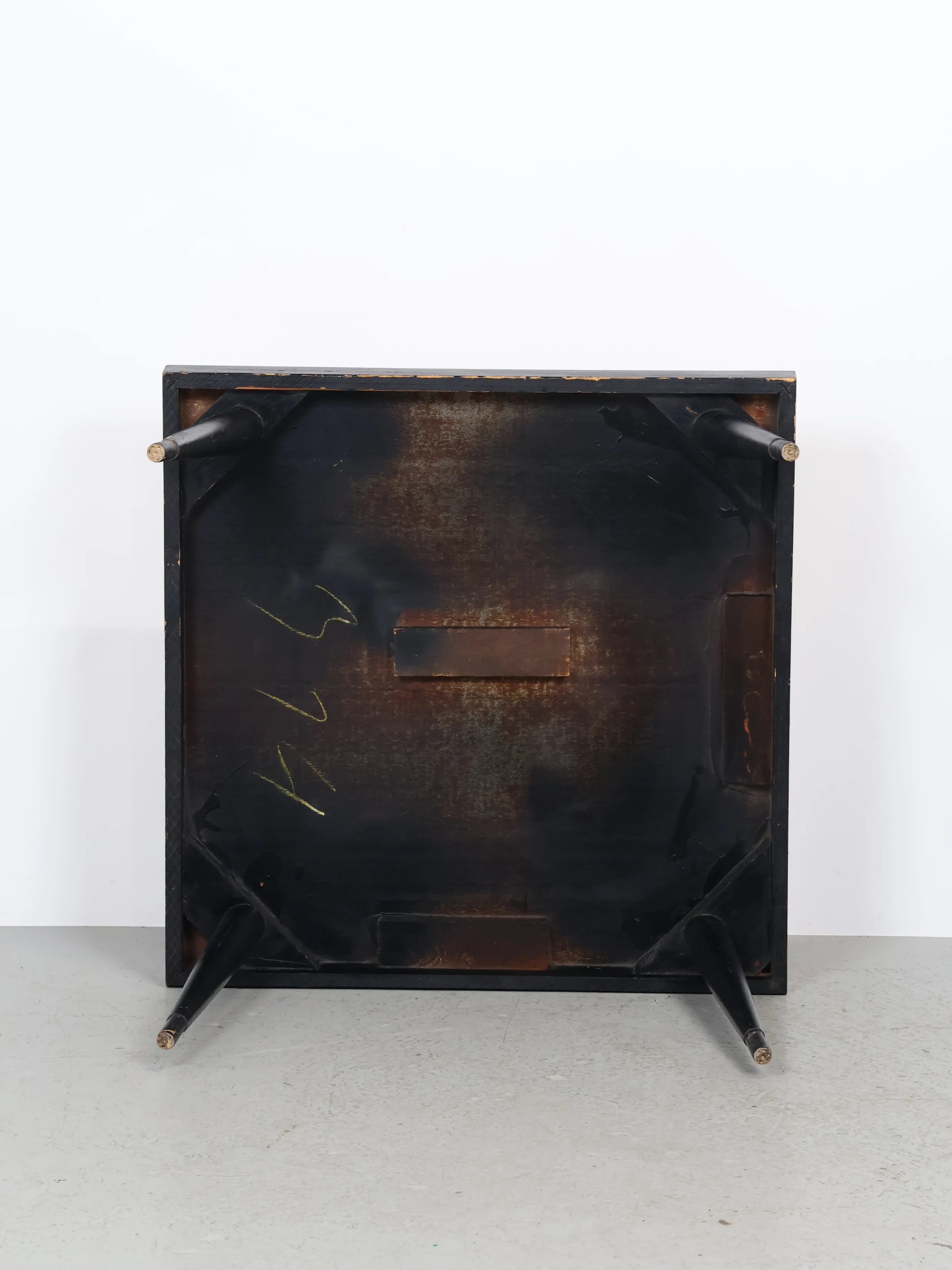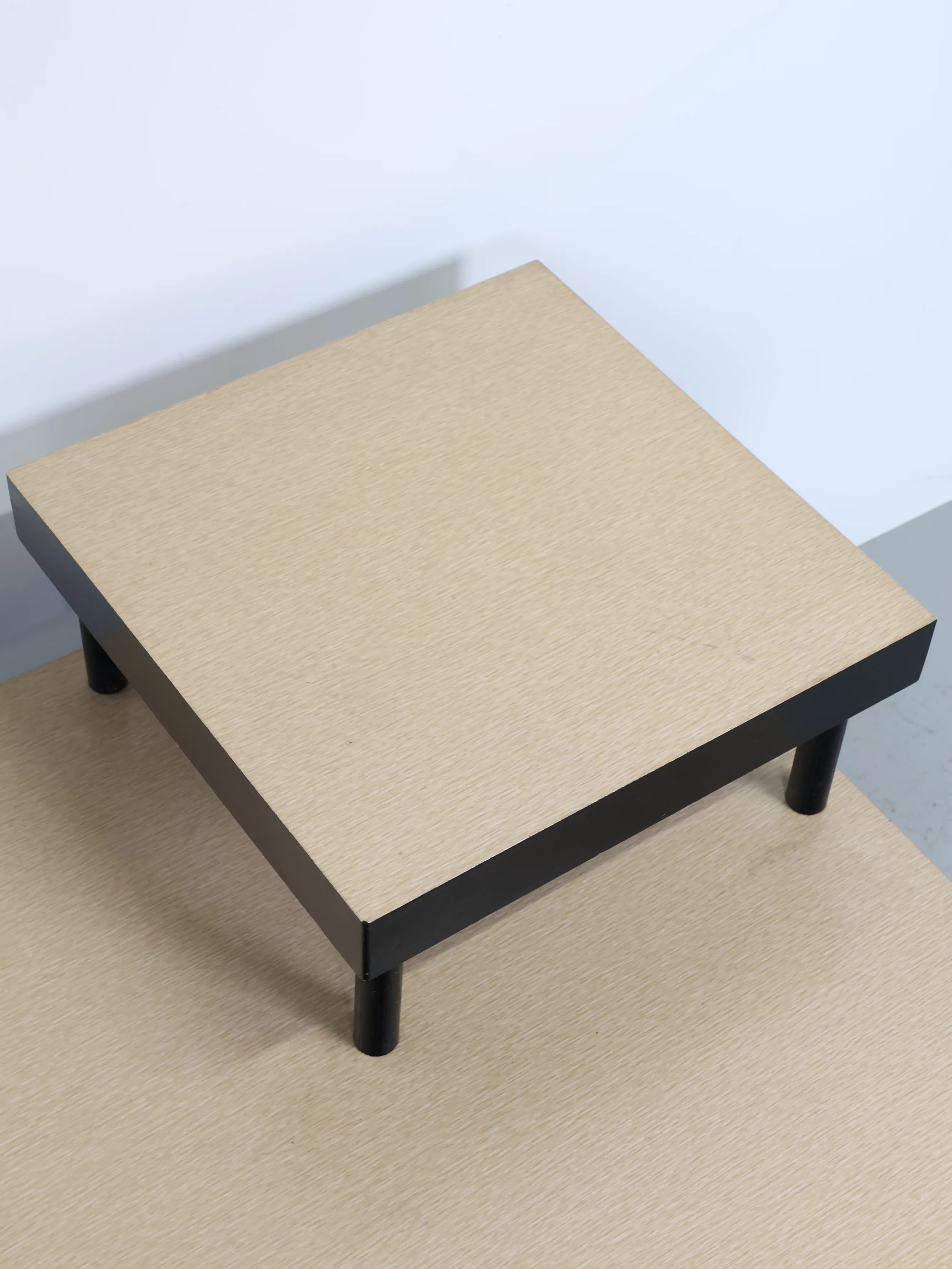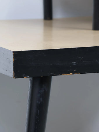 こちらは50'sならではのベージュの肉厚な天板にブラックの縁取りとテーパードした脚が雰囲気のあるデザイン。