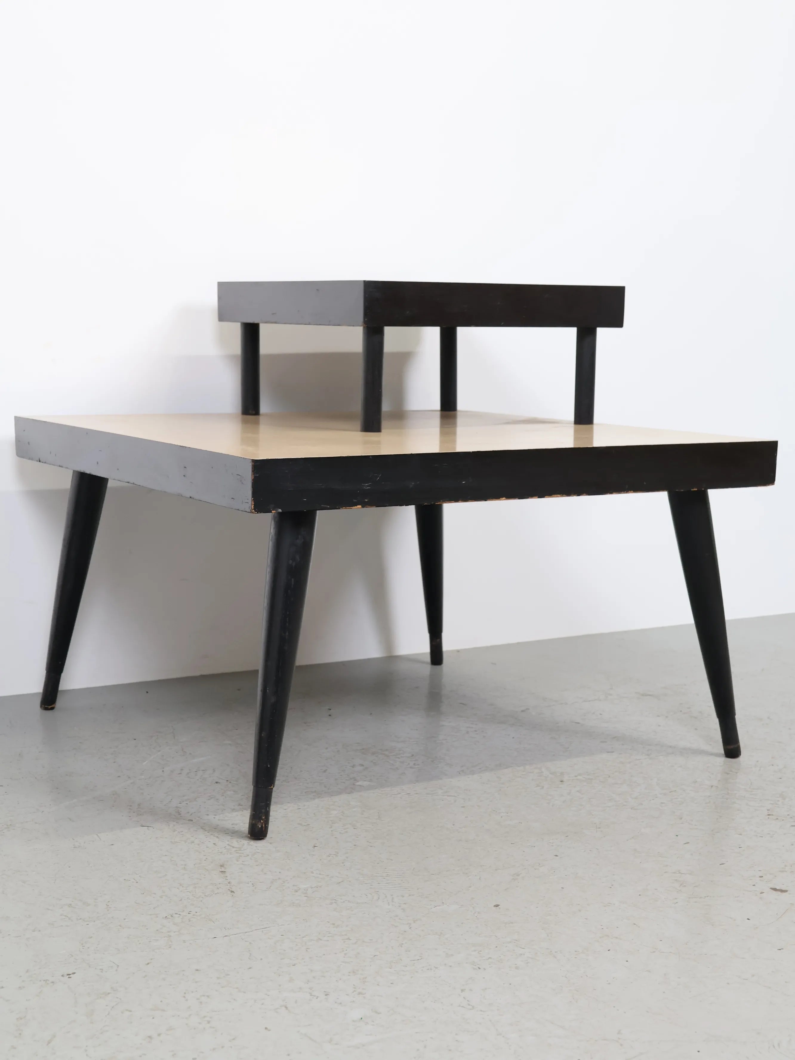 当時のアメリカのライフスタイルを色濃く反映した2段型のコーナーテーブルは、ソファなどのサイドテーブルとしてドリンクやテーブルランプを置く為に使用されていました。