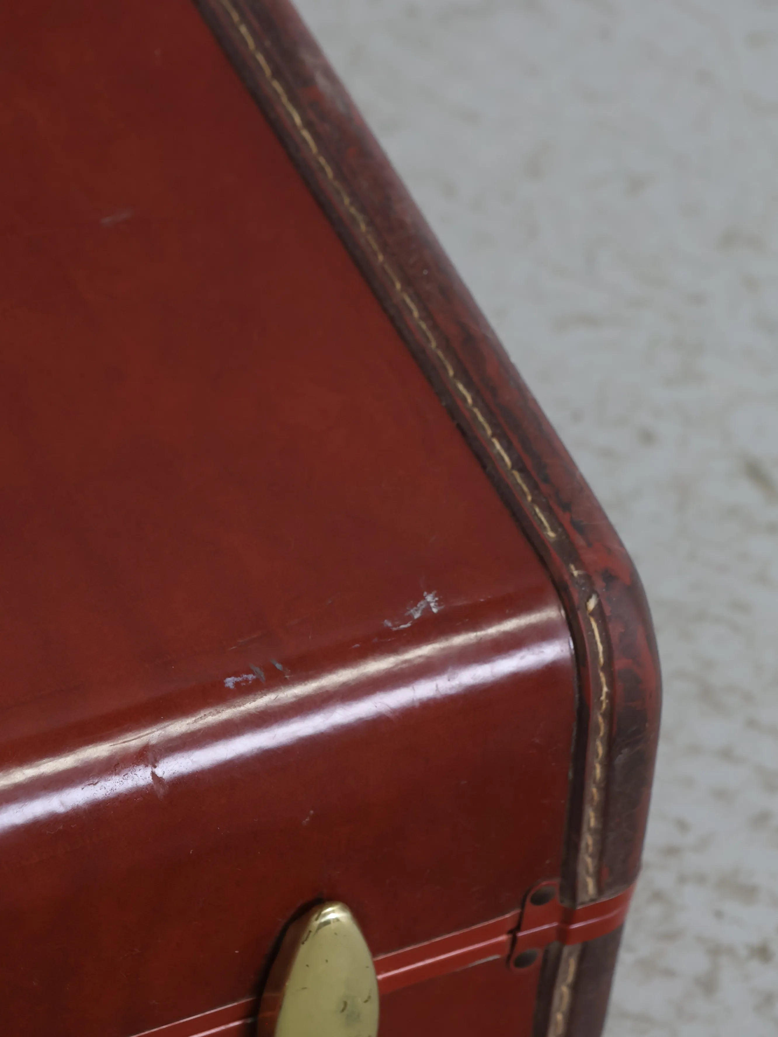 深みのあるブラウンカラーのスーツケースは、現行品にはないレトロなデザインとヴィンテージならではの経年変化がインテリアとして雰囲気作りにも最適です。