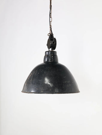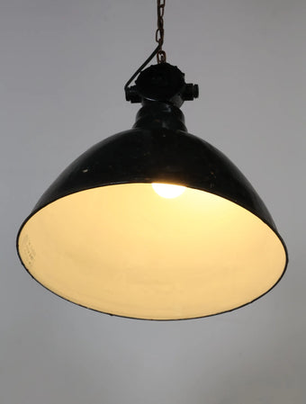 1950 - 60年代 ヴィンテージ インダストリアル ブラック ポーセリング ペンダントランプ