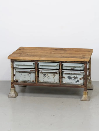 ヨーロッパより買い付けました1950 - 60年代のヴィンテージウッドトップメタルキャビネットです。