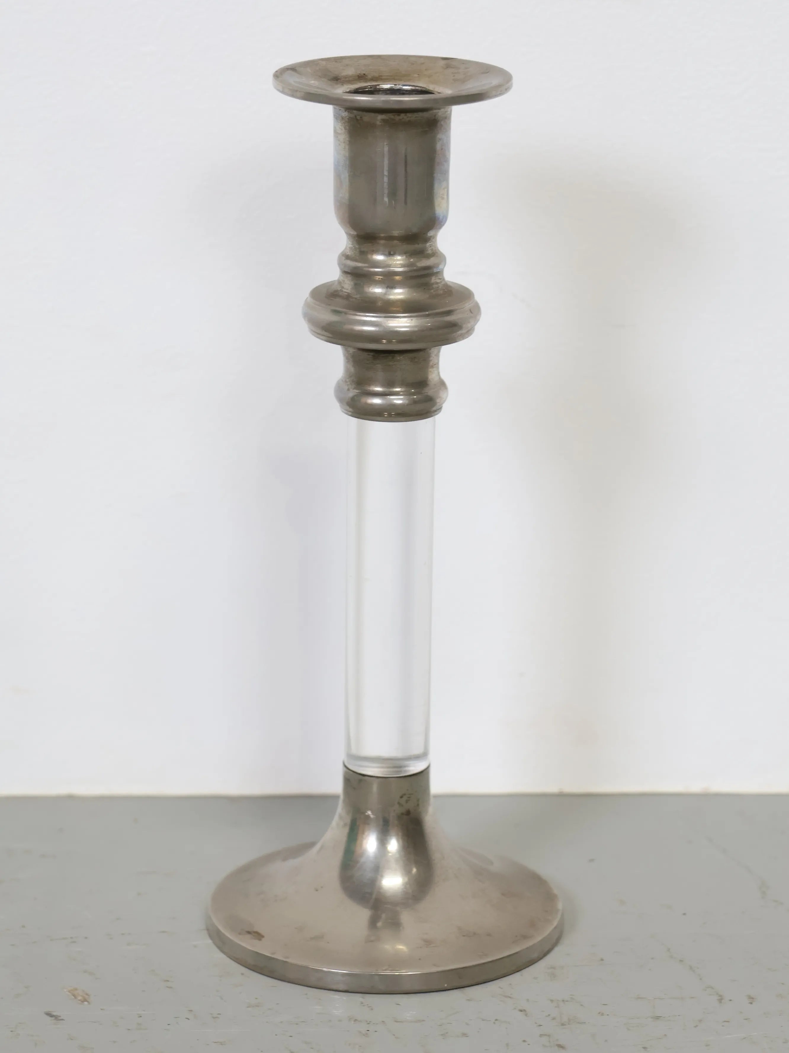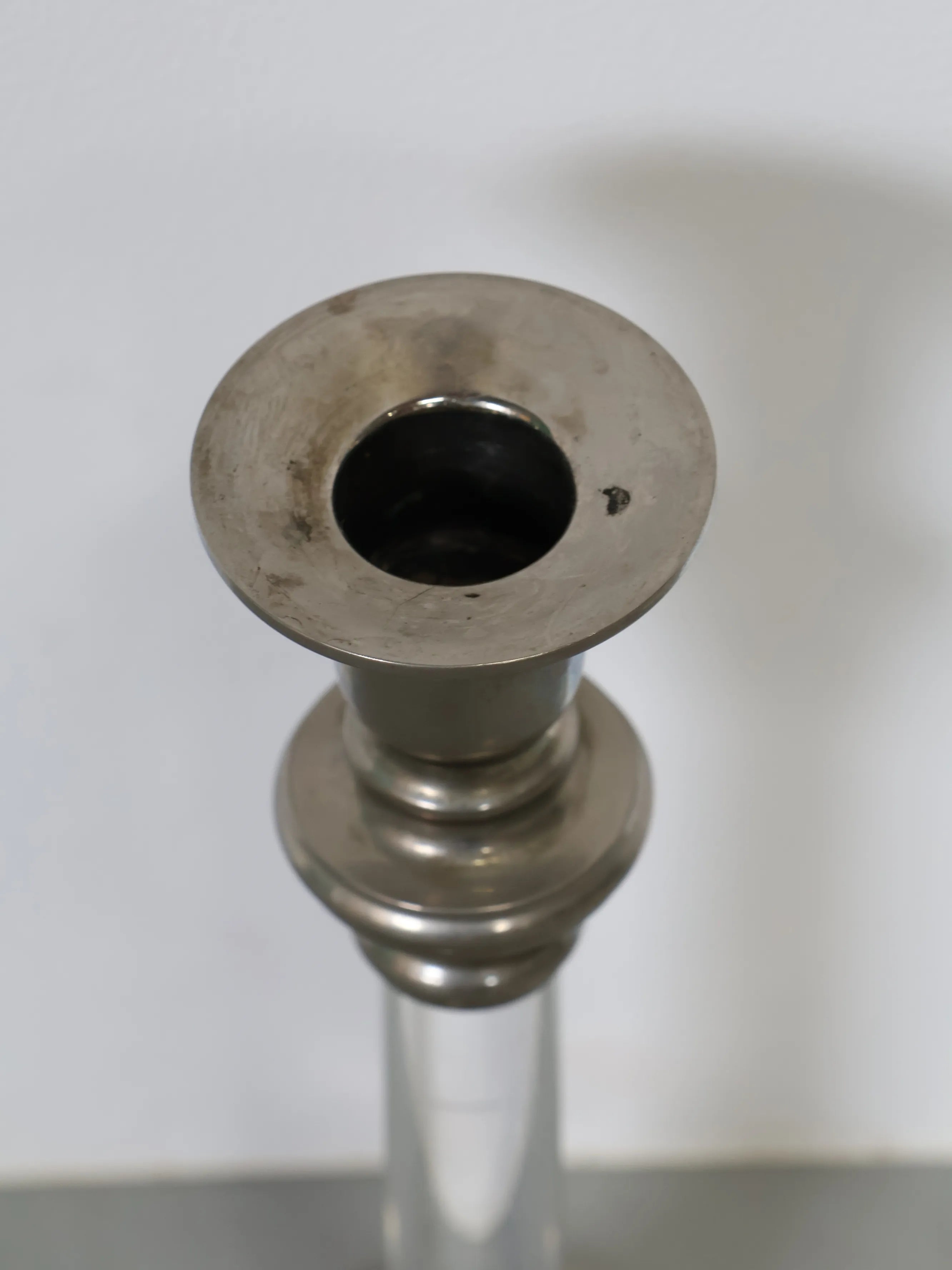 1950 - 60年代 ヴィンテージ キャンドルホルダー ガラス×メタル モダンアンティーク キャンドルスタンド シルバー調 インテリア