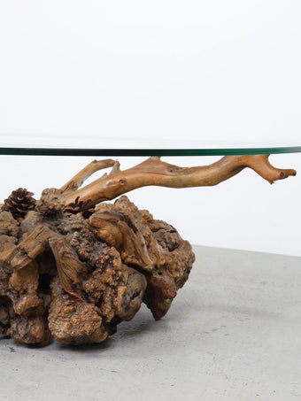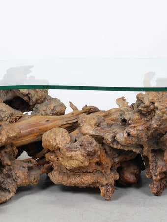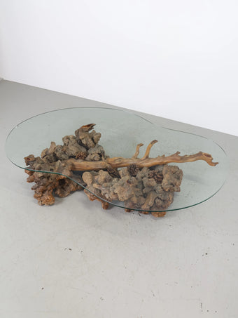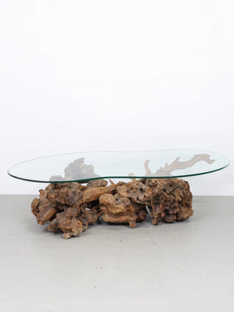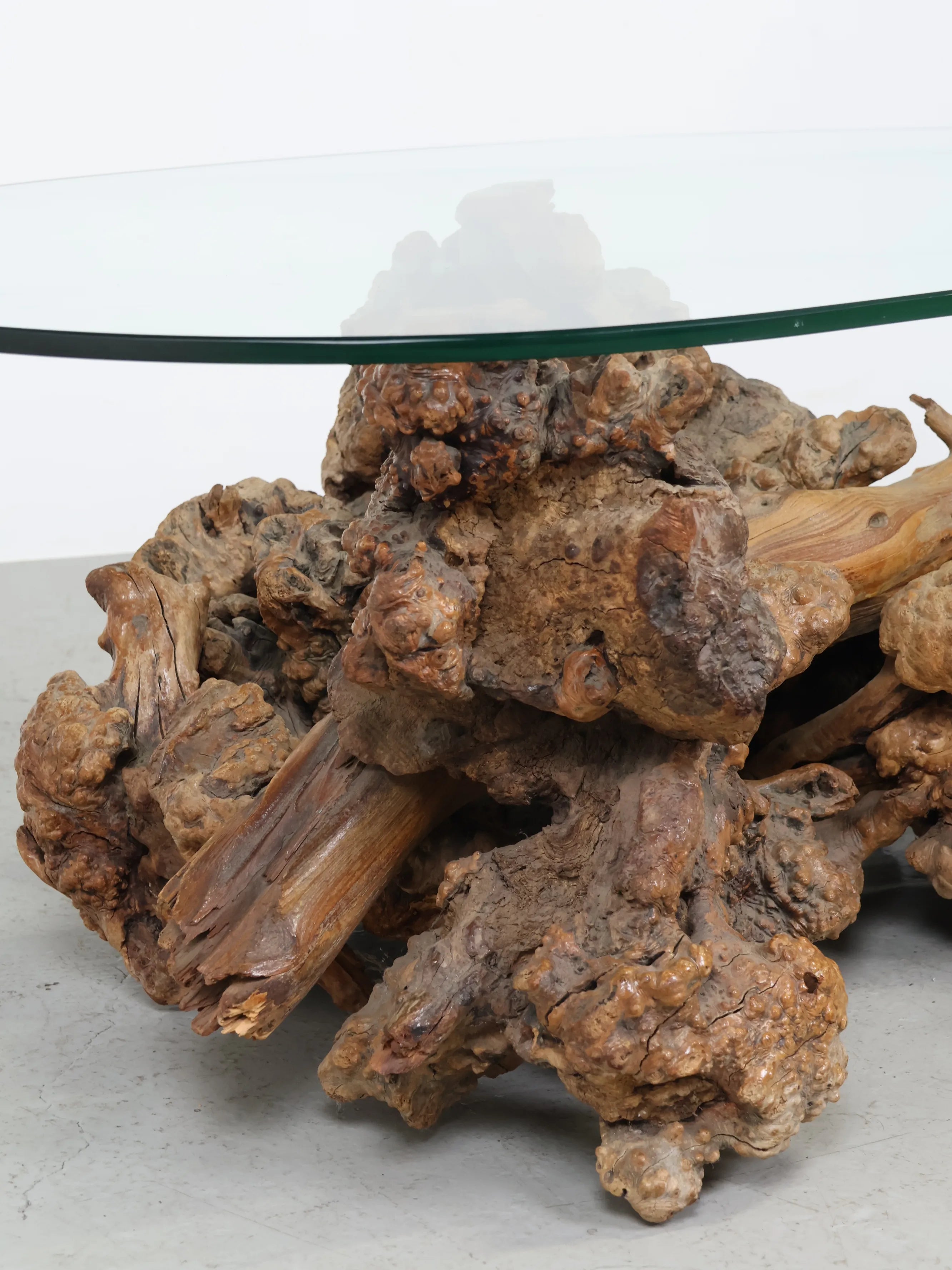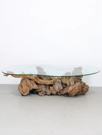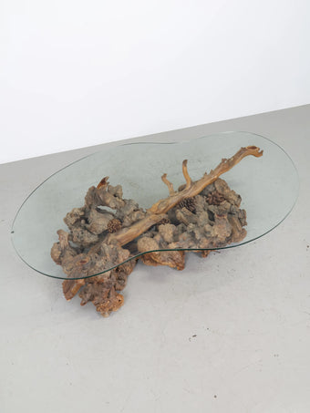 1950 - 60年代 ヴィンテージ ドリフトウッドベース ガラストップ テーブル