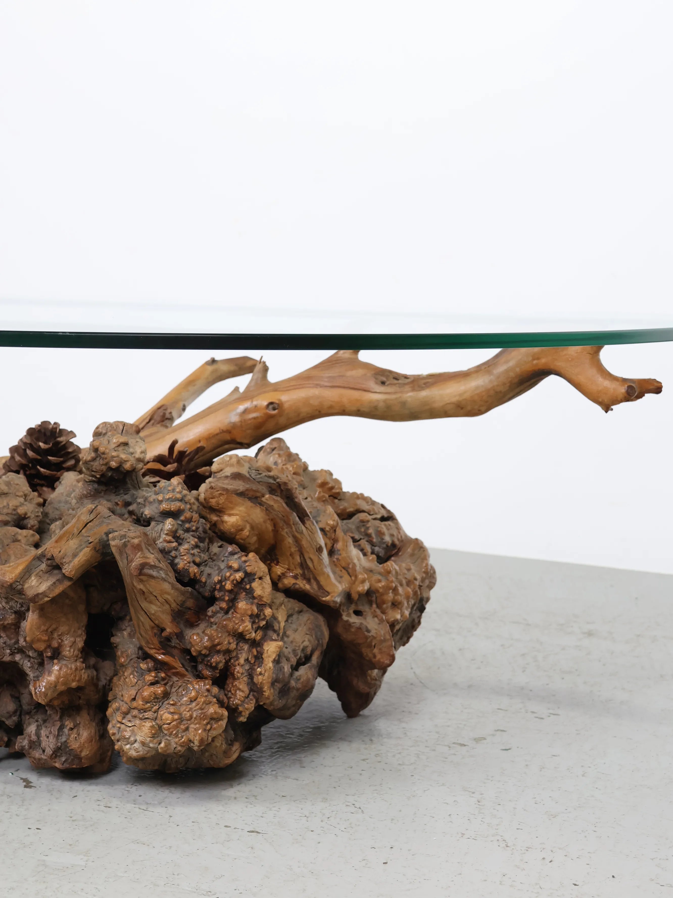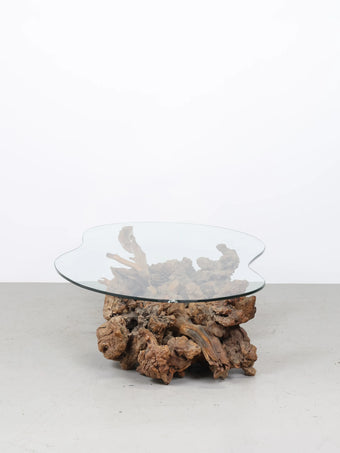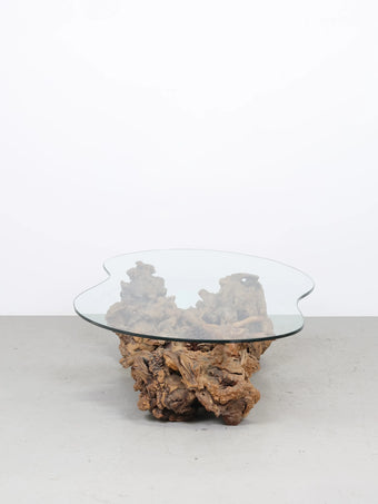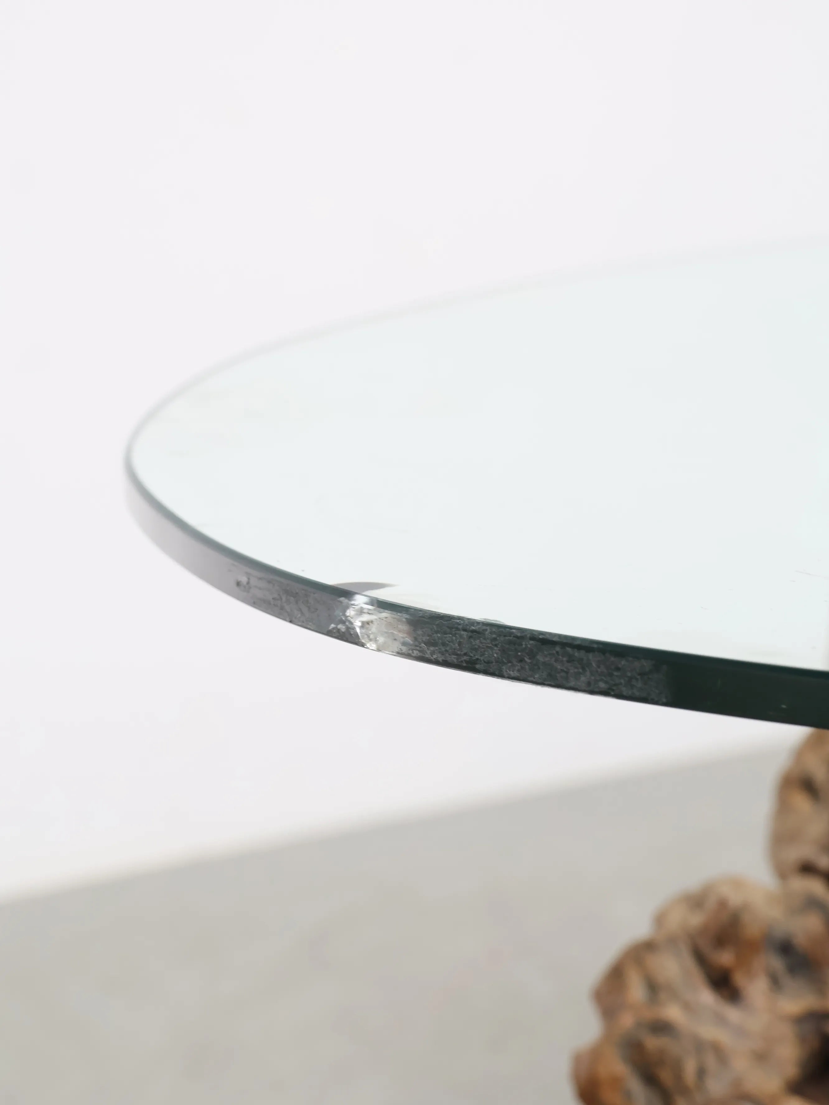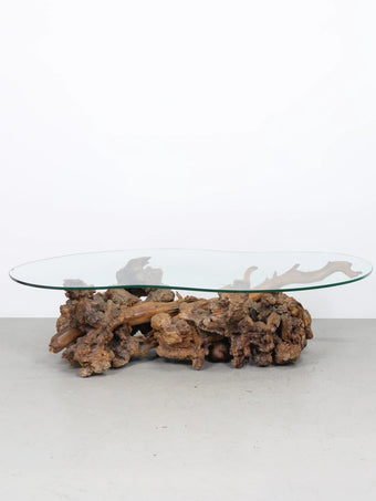 流木をベースにガラストップの天板を組み合わせたデザインはミッドセンチュリー期を代表するアイテムの一つです。