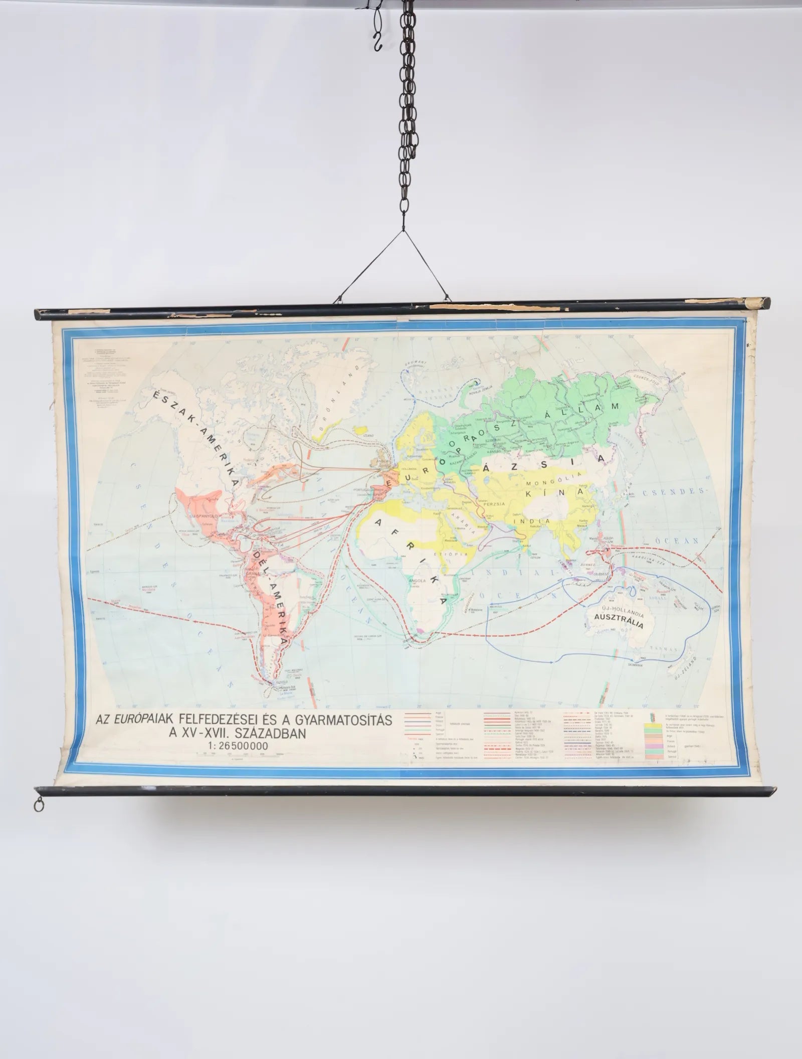 当時の歴史や世界観を視覚的に伝えるために学校で使用されていたもので、独特の色使いと風合いがインテリアとしても魅力的です。