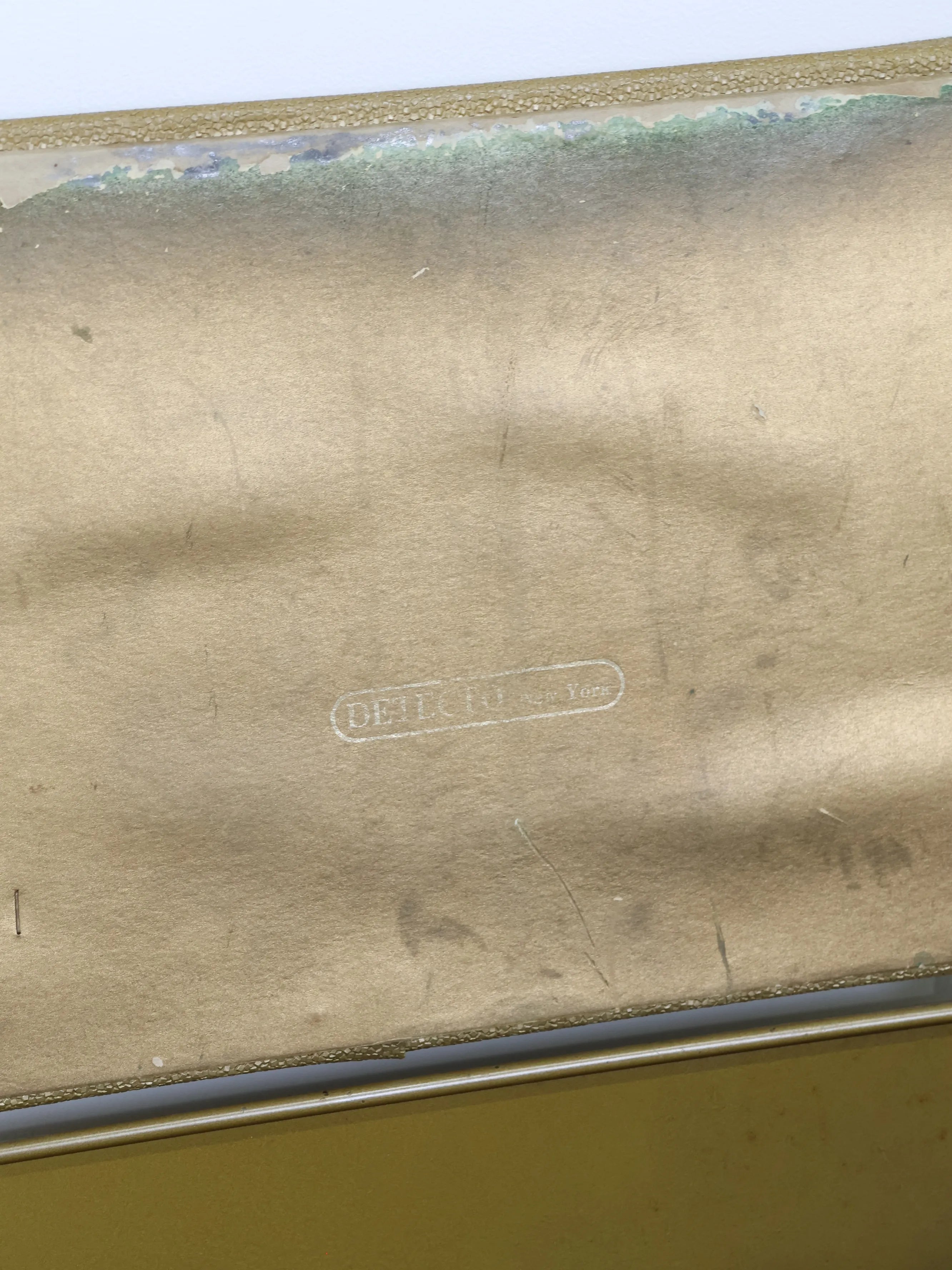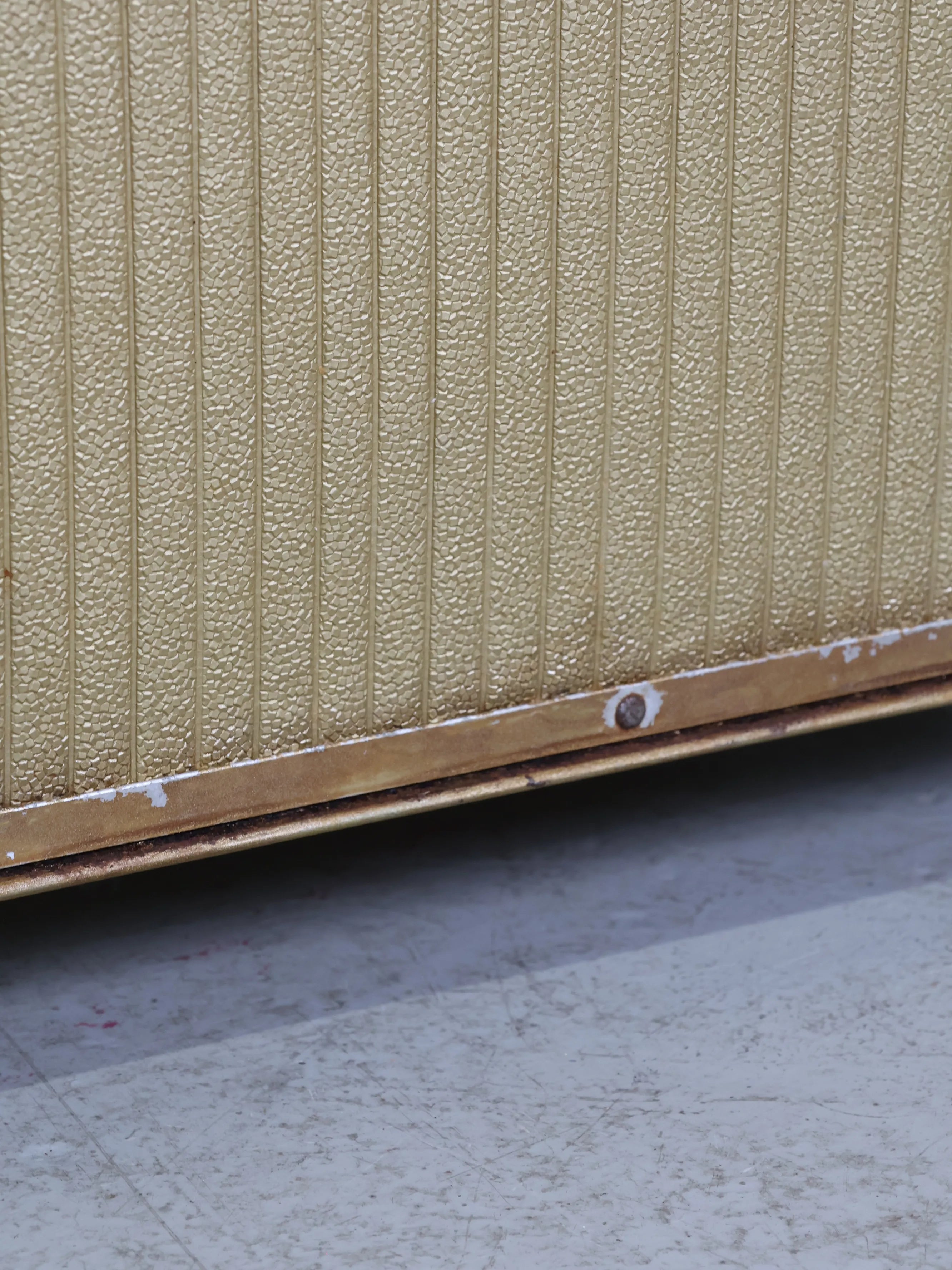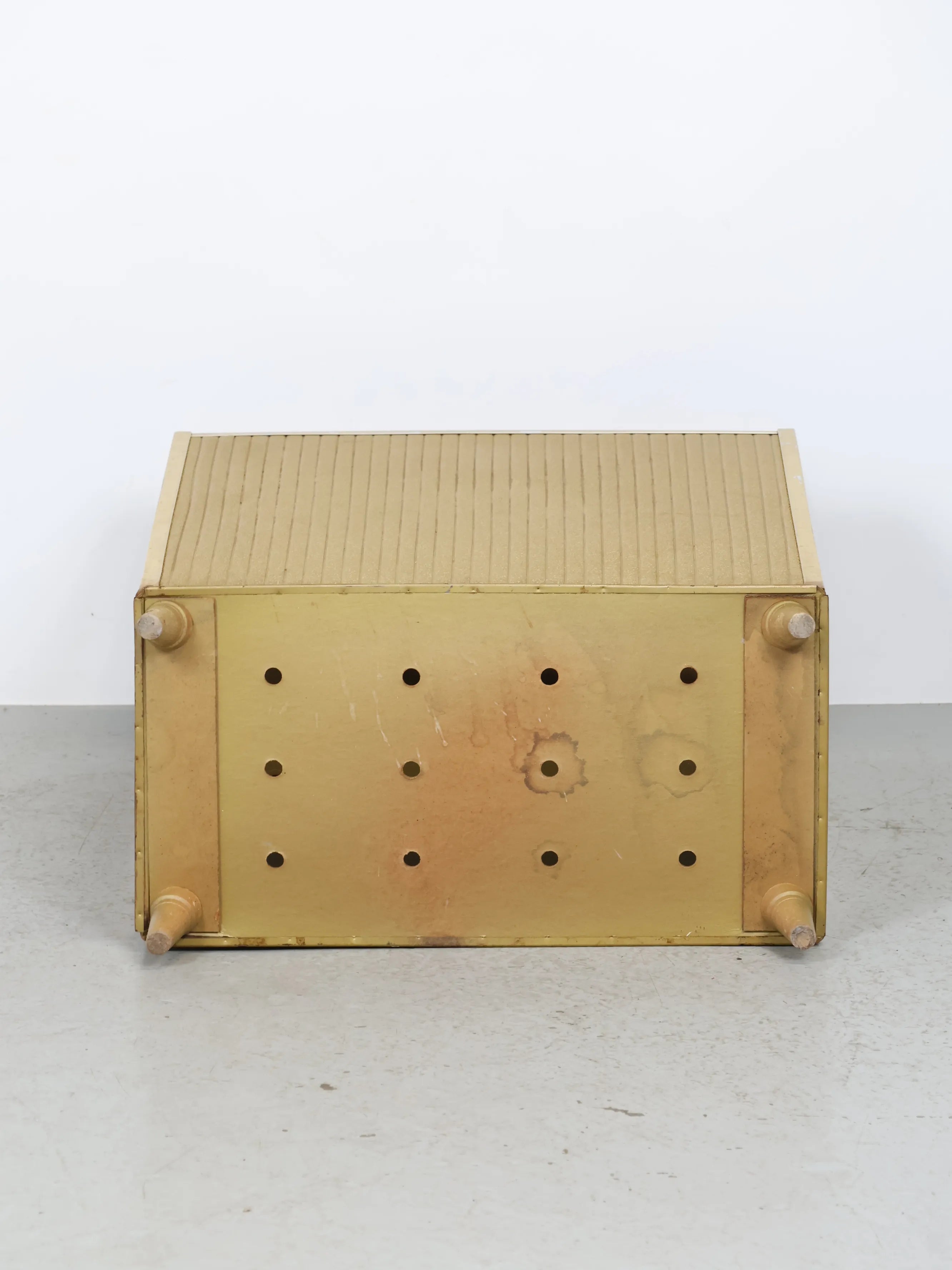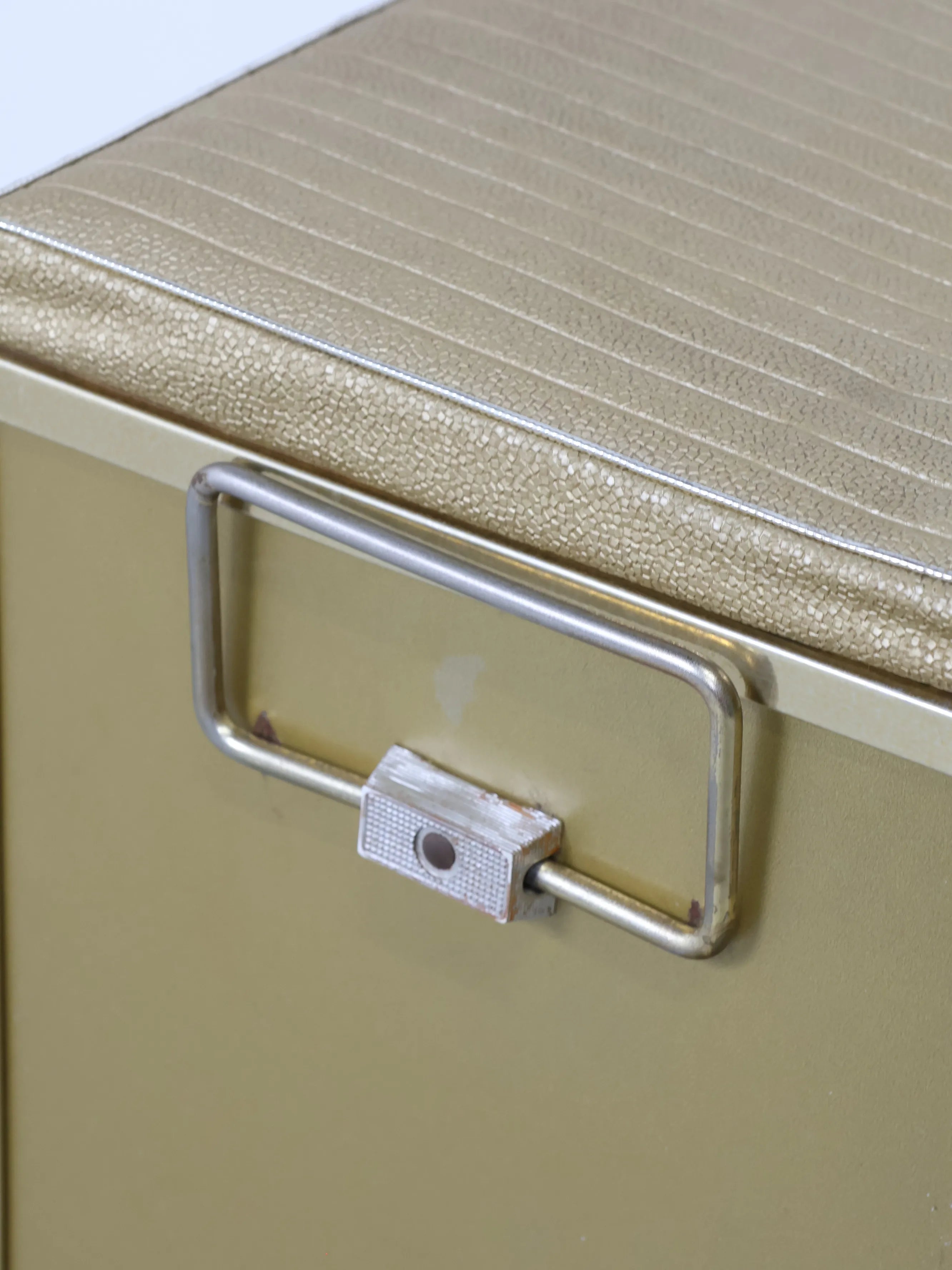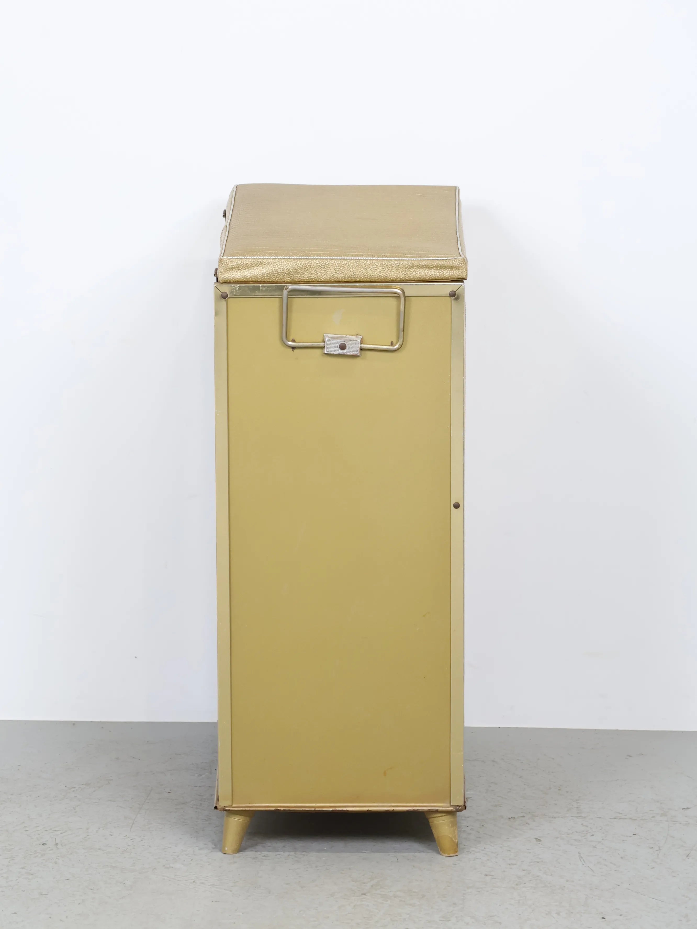 正面と側面にゴールドのビニールレザーが貼られたエレガント且つレトロなデザイン。