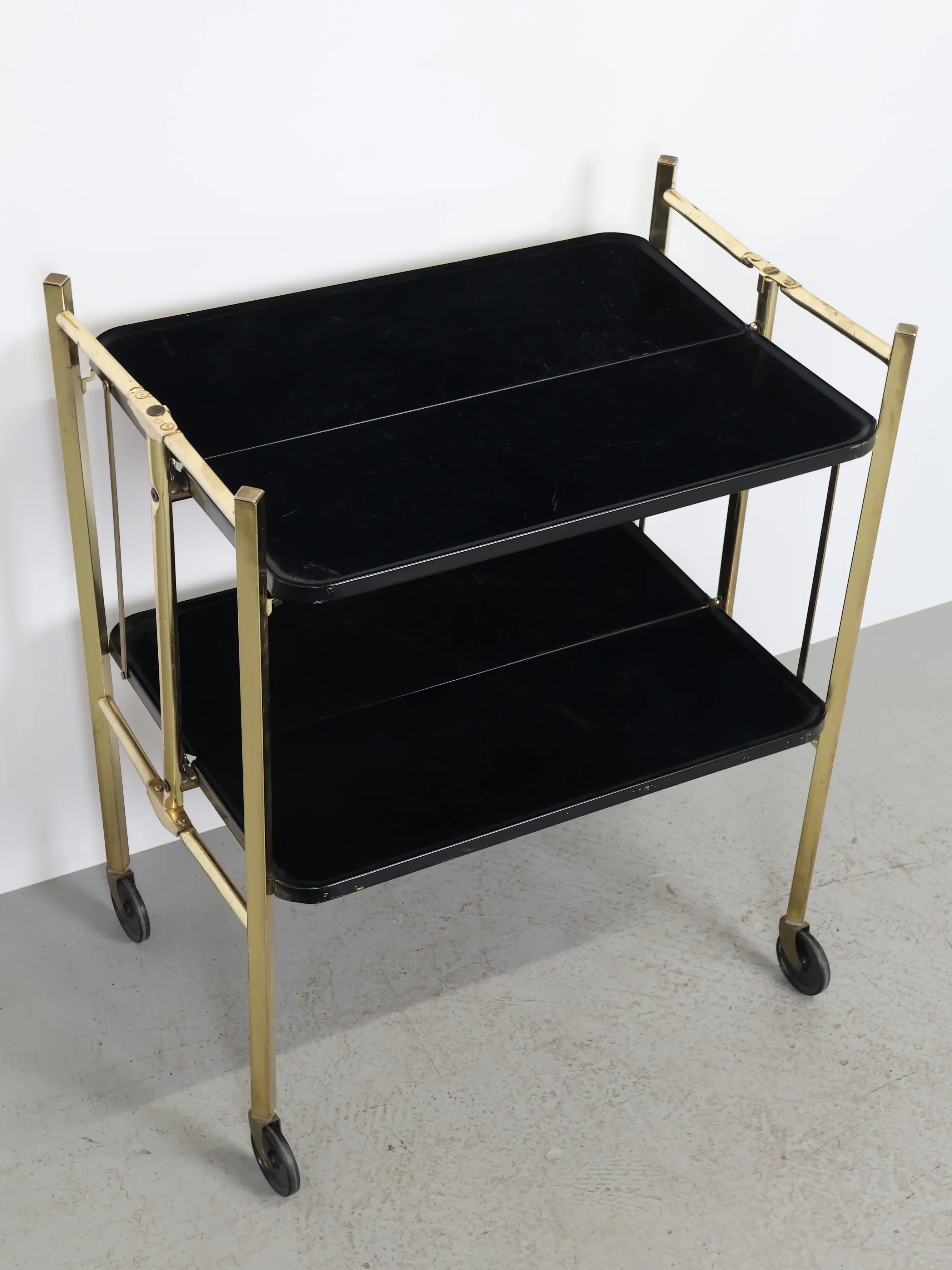 1950 - 60年代 Reylon社製 ヴィンテージ ブラック & ゴールドメタル フォルディング ティーカート