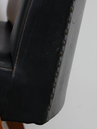 - 品名:ヴィンテージ ウッドフレーム ブラックビニールレザー アームチェア イス