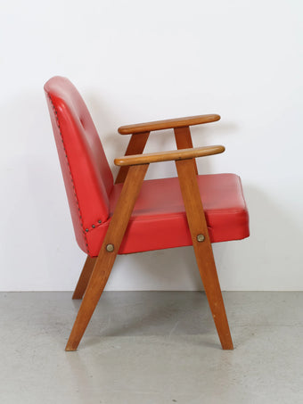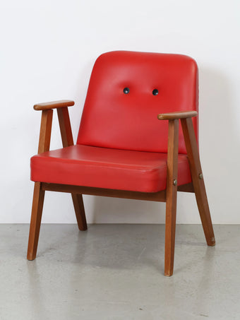 鮮やかなレッドカラーが目を引く、ヴィンテージのアームチェア。