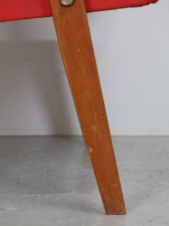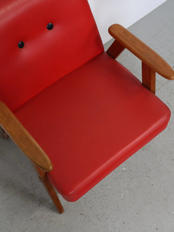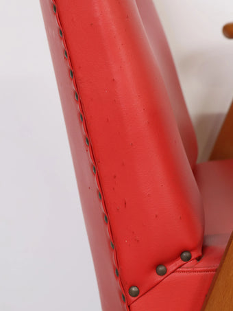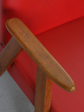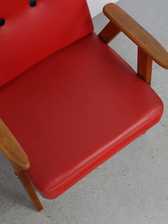 1960年代 ヴィンテージ ウッドフレーム レッドビニールレザー アームチェア
