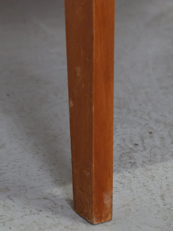 やや傾斜したフレームと、シャープなラインの木製アームが特徴的で、ミッドセンチュリー期らしい軽やかなフォルムが印象的な一脚です。