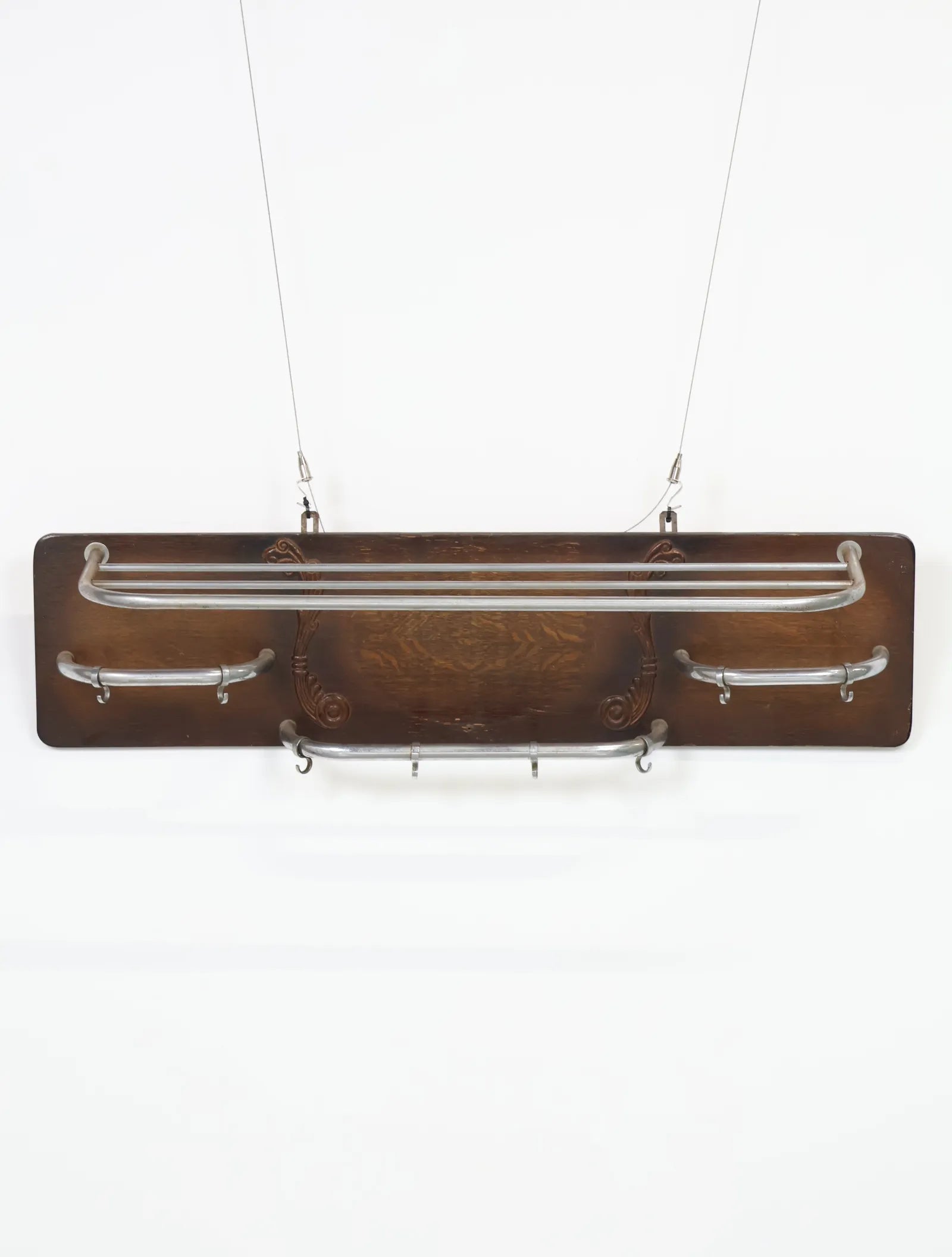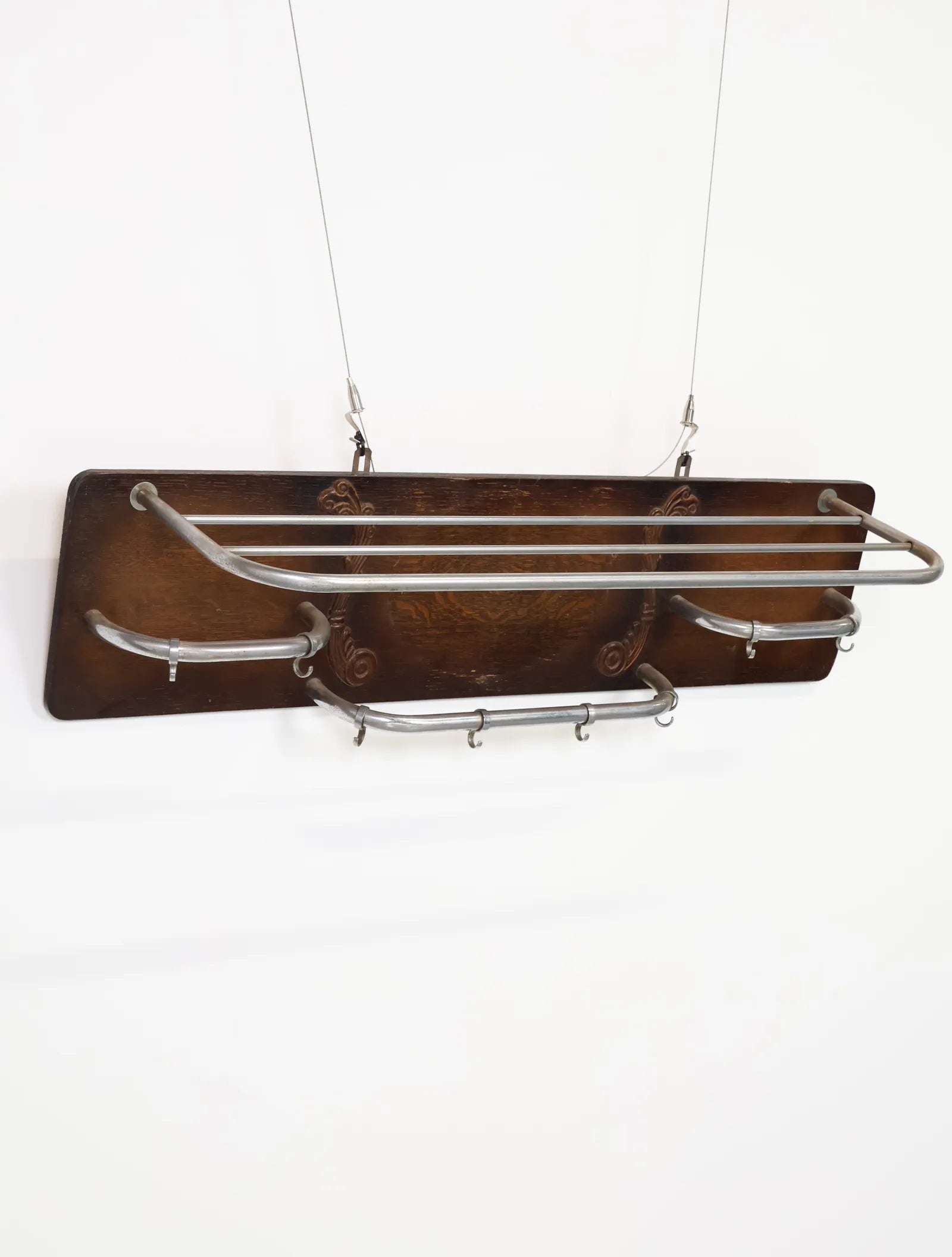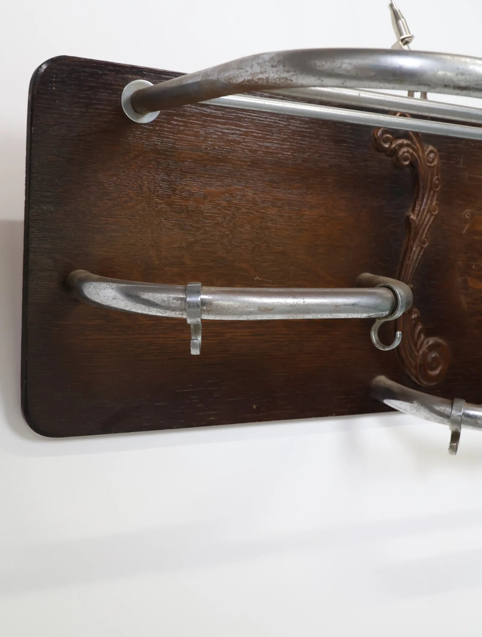 ヨーロッパより買い付けました1960年代のウッドベースメタルウォールラックです。