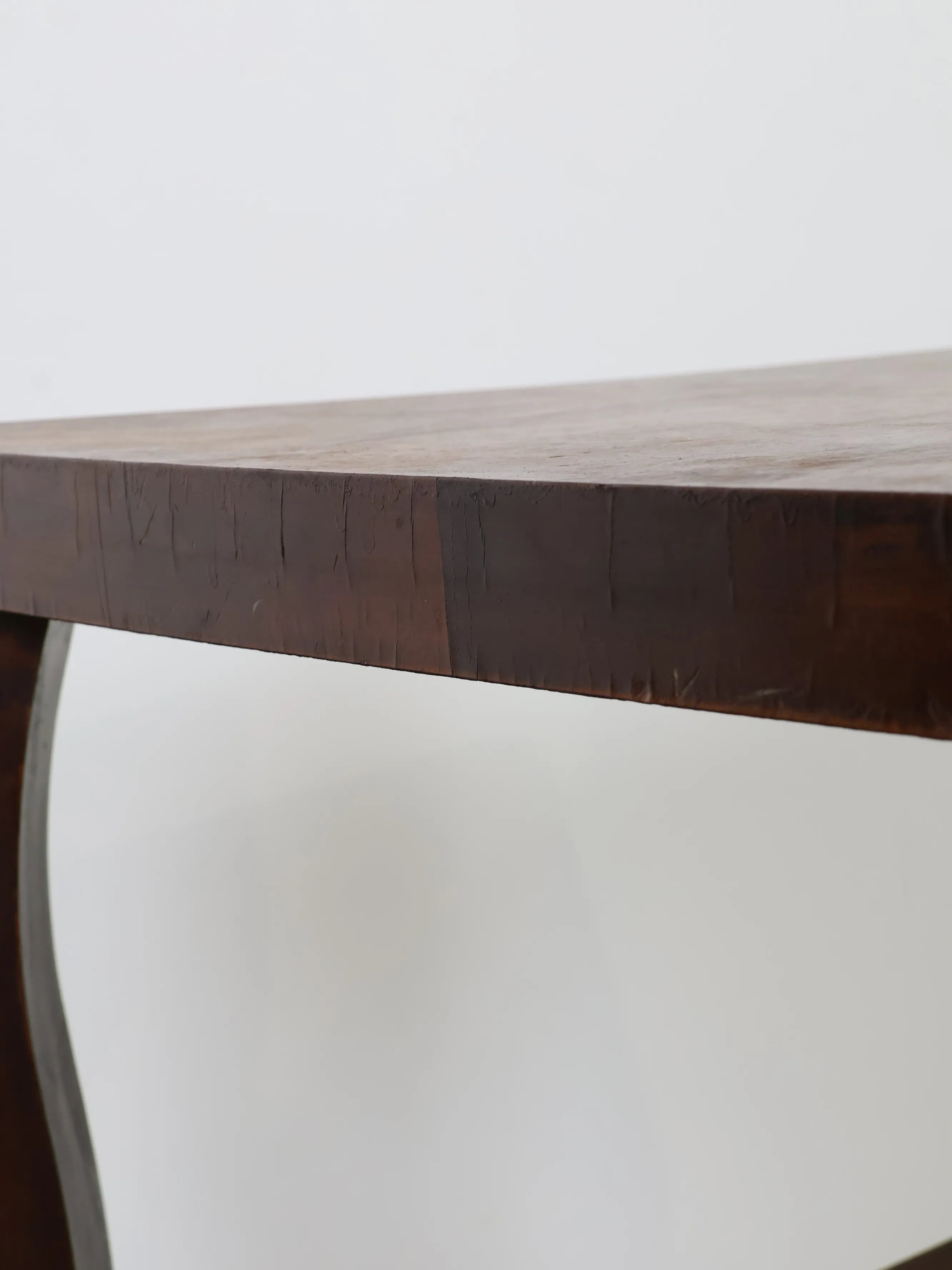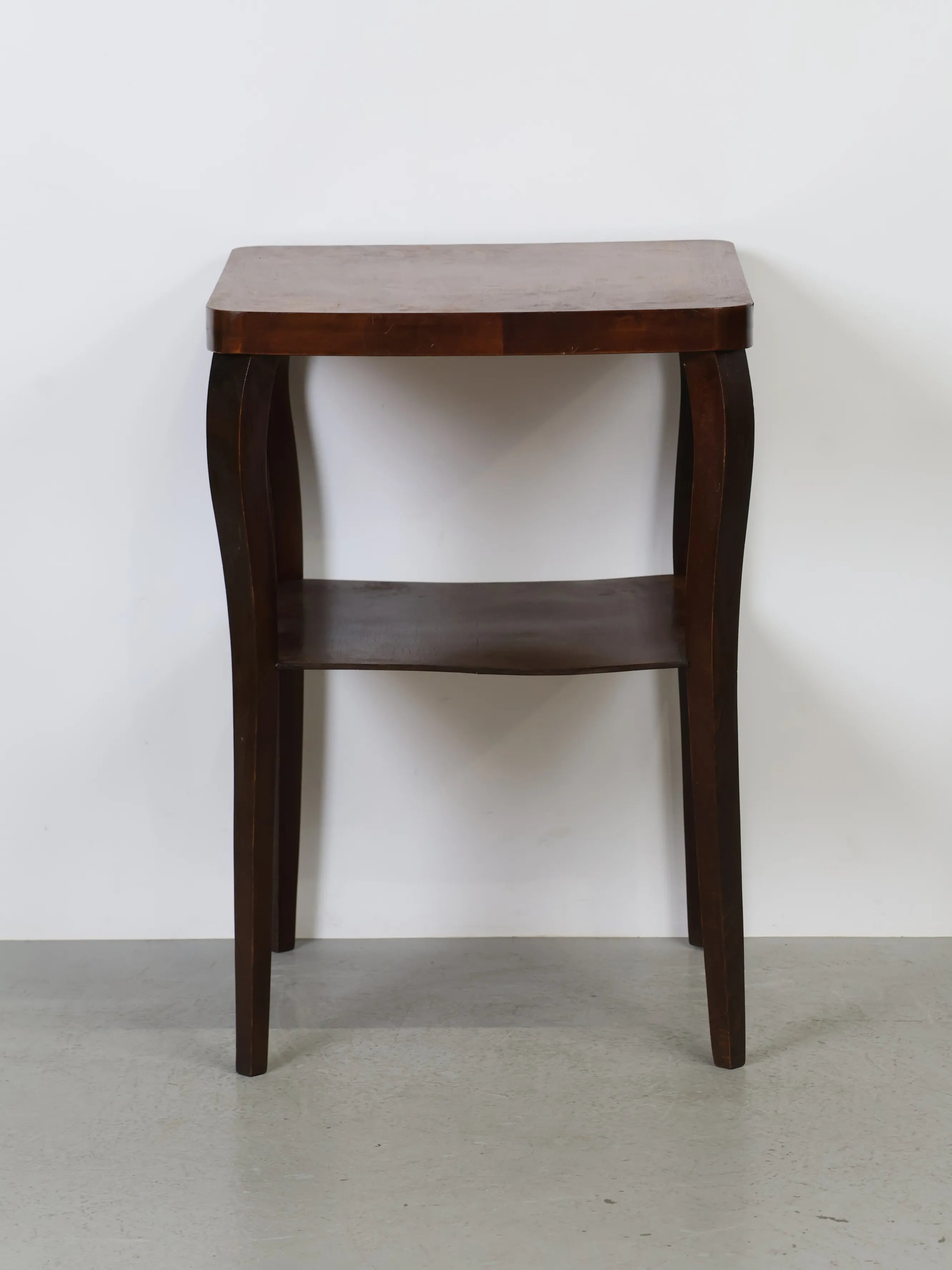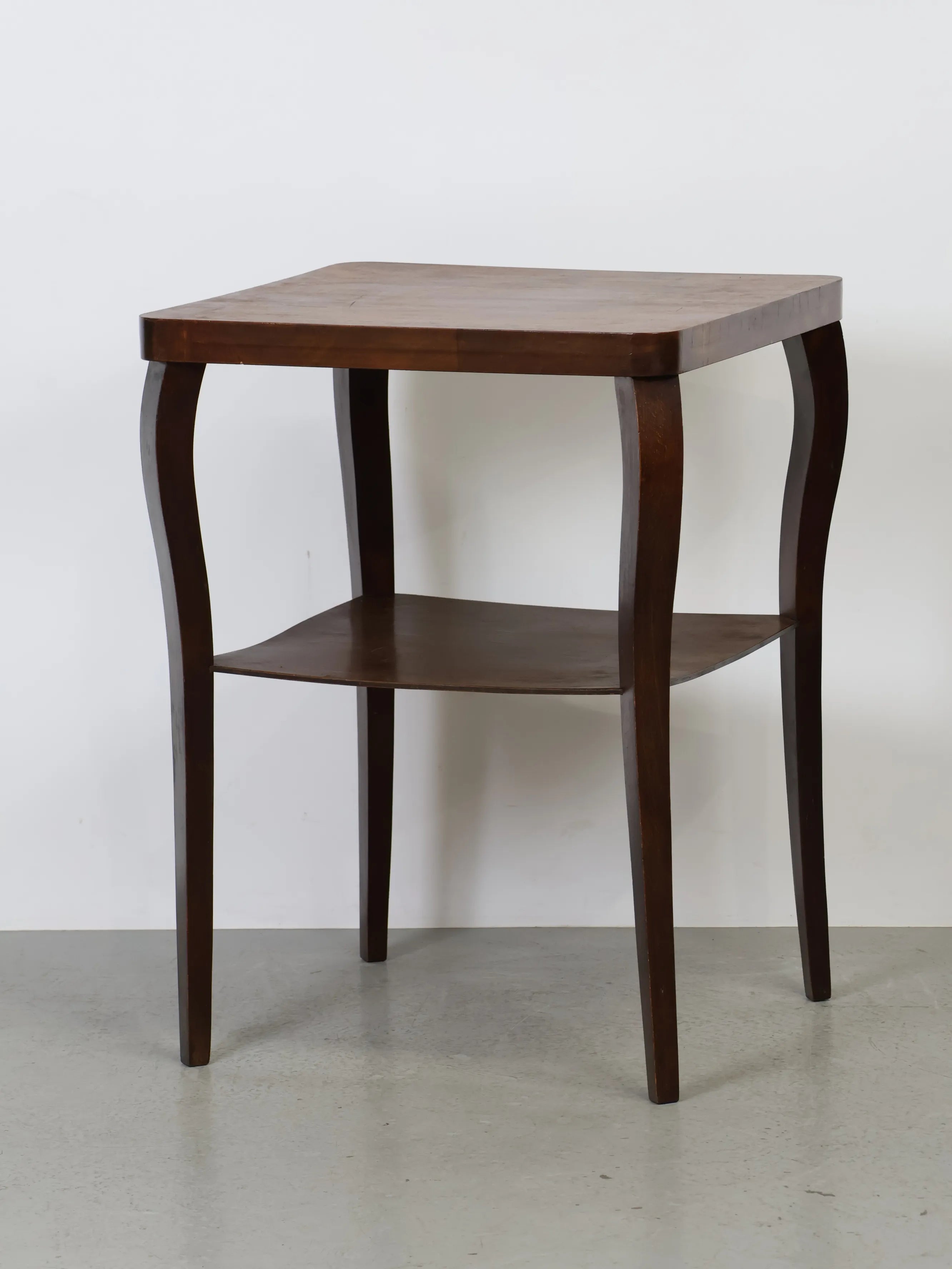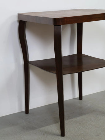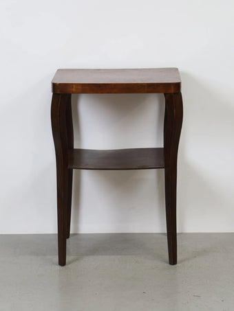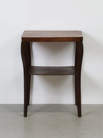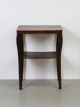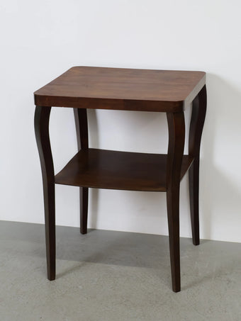 ハンガリーより買い付けました、落ち着いた色合いのウッドと、緩やかなカーブを描く脚部が印象的なヴィンテージウッドサイドテーブル。