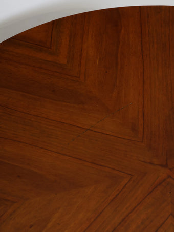 天板には放射状に配置された木目が美しく、ヴィンテージ家具ならではの温かみのある色味と風合いを楽しめます。