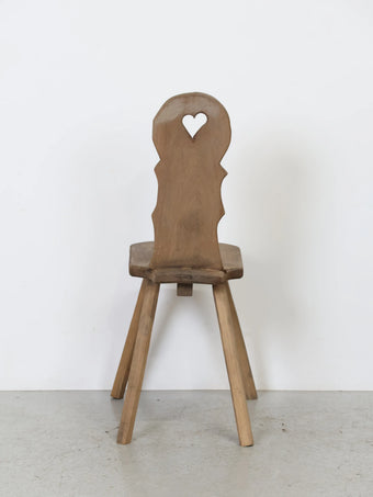 背もたれにはハート型の透かし彫りが施されており、どこか温かみのある可愛らしいデザインが印象的です。