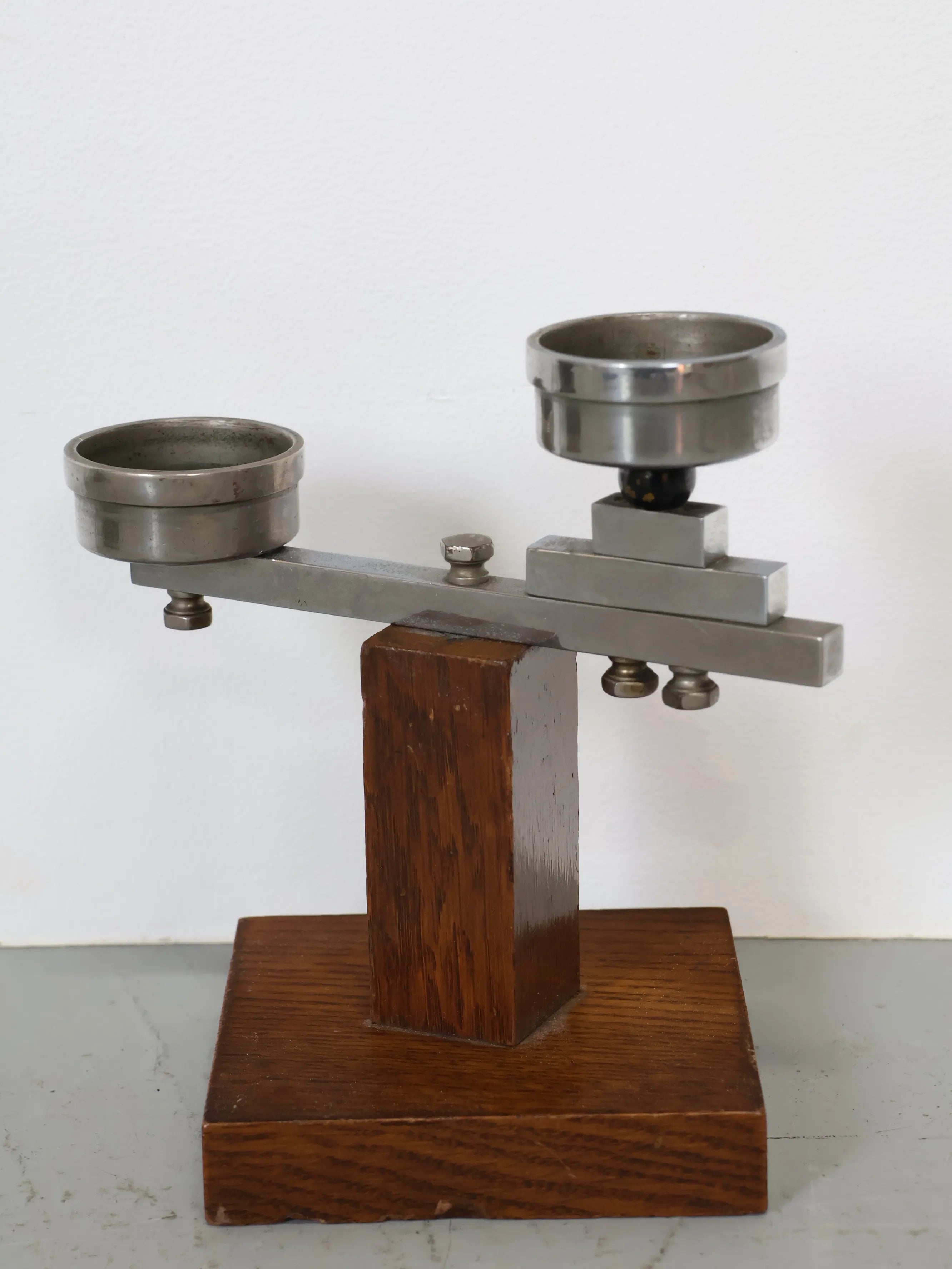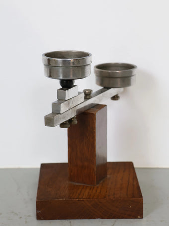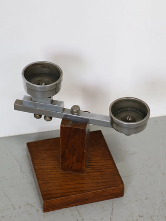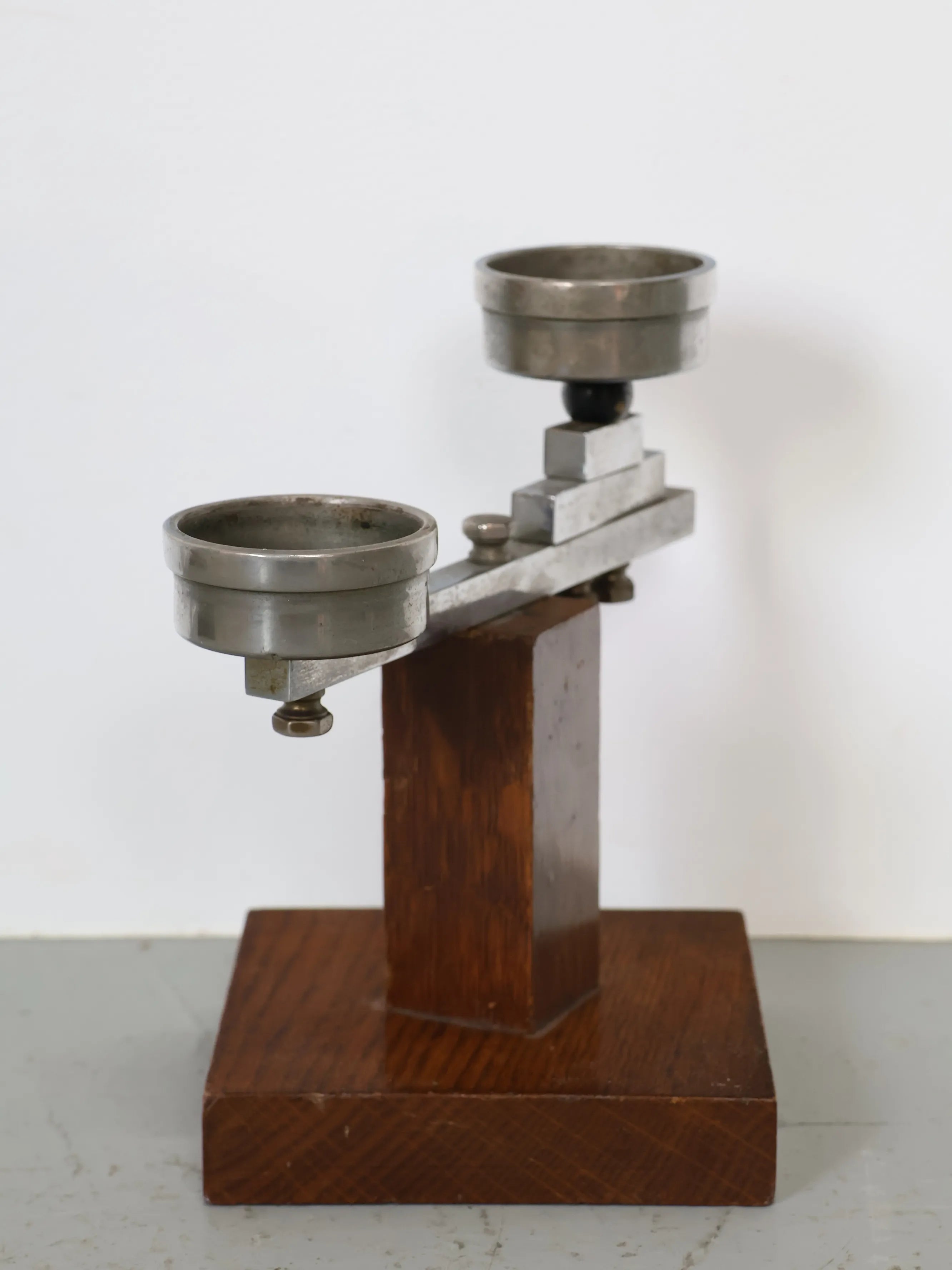 1960年代 ヴィンテージ 2灯 キャンドルスタンド モダン 木製ベース メタル 燭台 バウハウス アールデコ インダストリアル