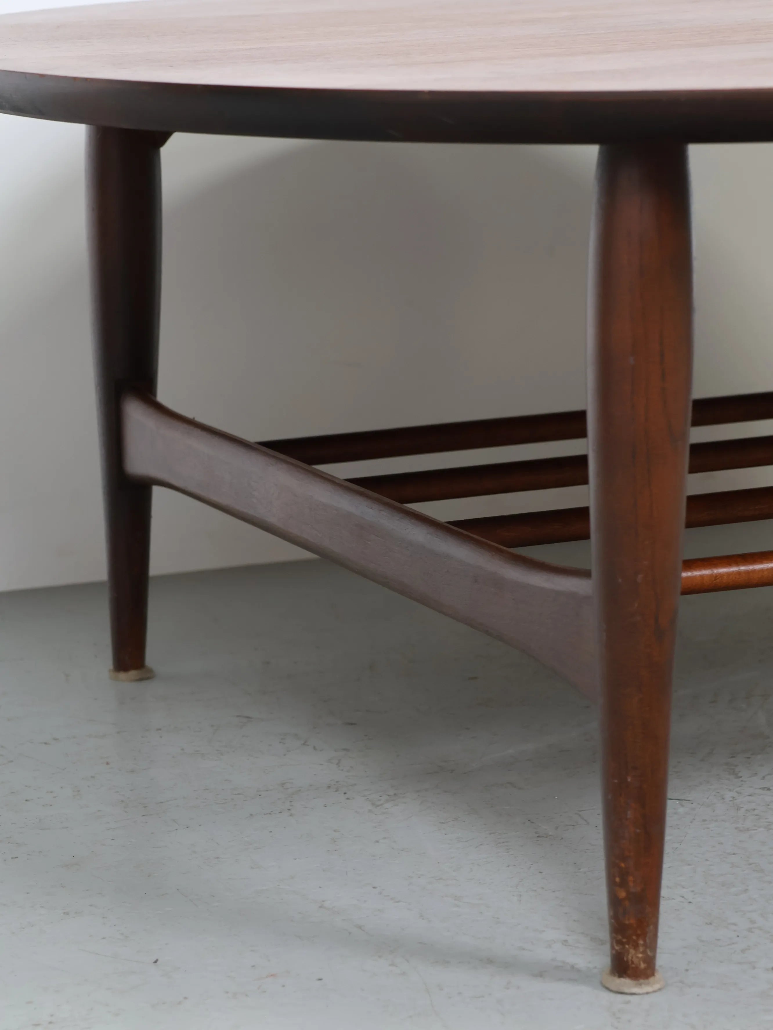 この時代のサイズ感もしっかりあるラウンド型のセンターテーブルは希少価値が高く、末長くご愛用いただくことができるおすすめの逸品です。
