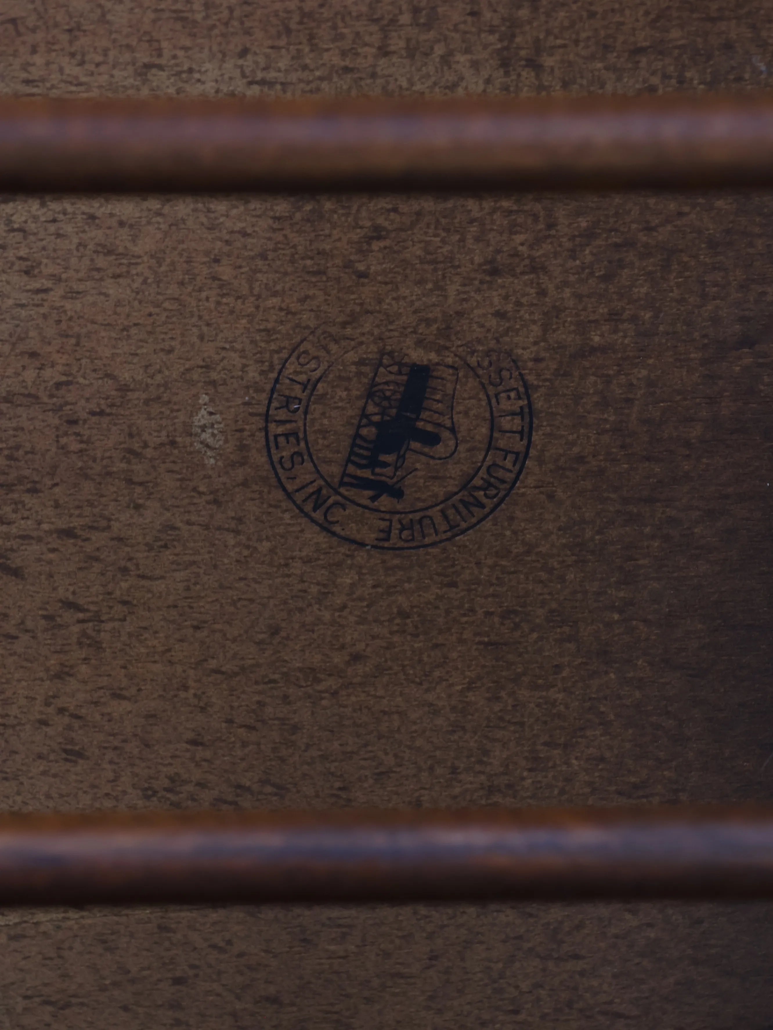 天板の中央には同色の組み木でさりげなくデザインが入り、Bassett Furniture社ならではの拘りを感じられます。