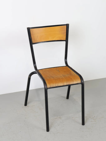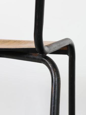 ヨーロッパより買い付けました1960年代のMullca社製 ブラックメタルフレームウッドフレンチスクールチェアです。