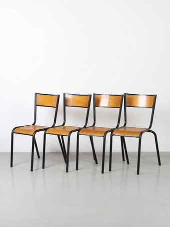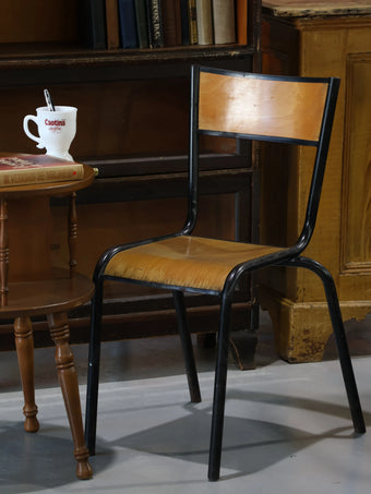 1960年代 Mullca社製 ヴィンテージ ブラックメタルフレーム ウッド フレンチ スクールチェア イス
