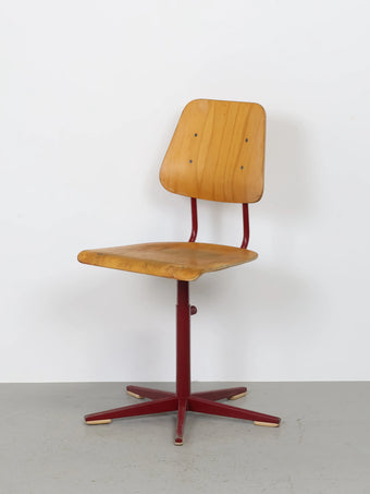 1960年代 Embru社製 ヴィンテージ レッドメタルベース ウッド スクールチェア イス