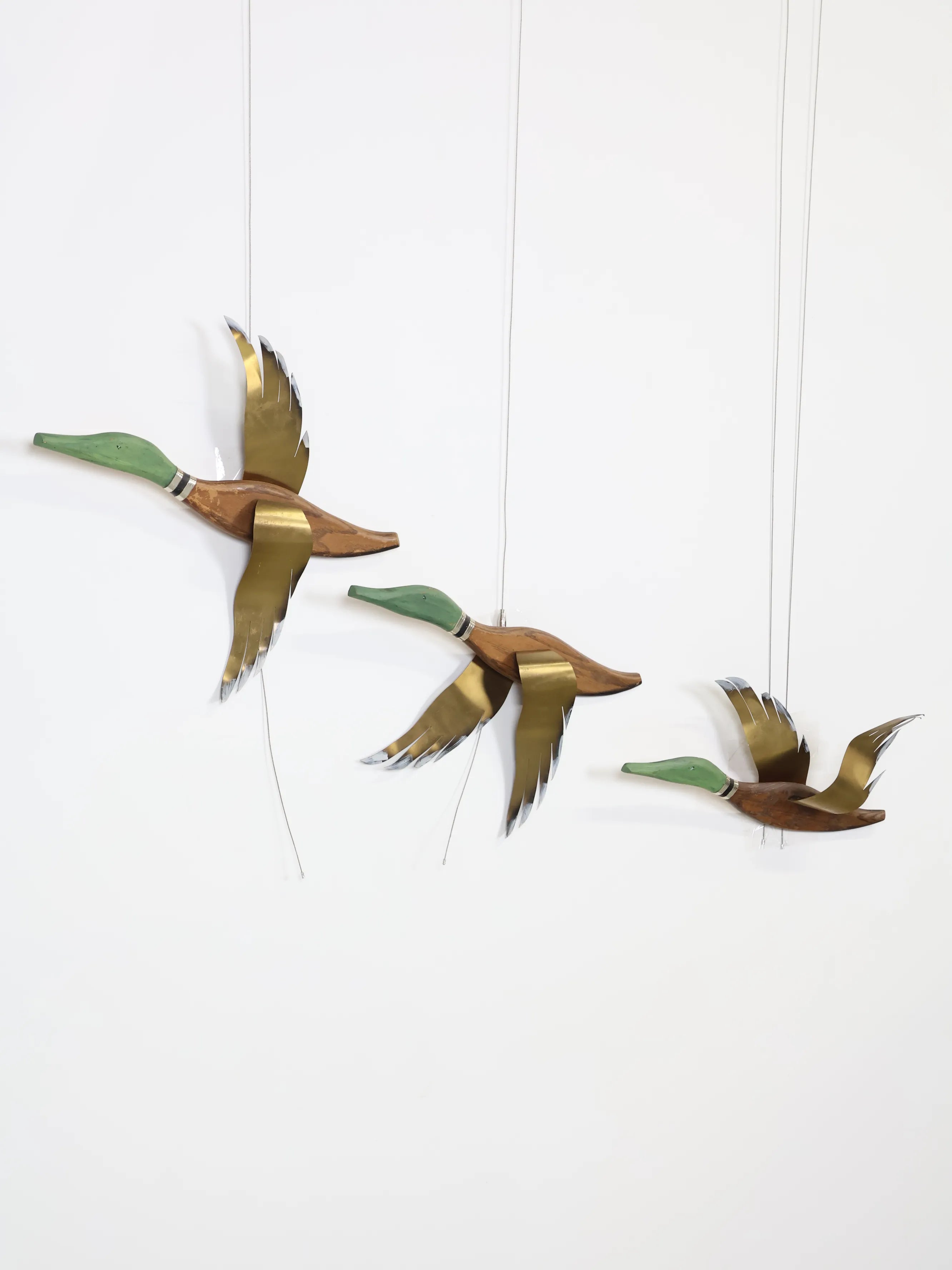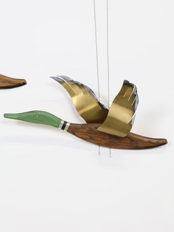 1960年代 ヴィンテージ ウッド & ブラス フライング グース ウォールデコ (3点セット)