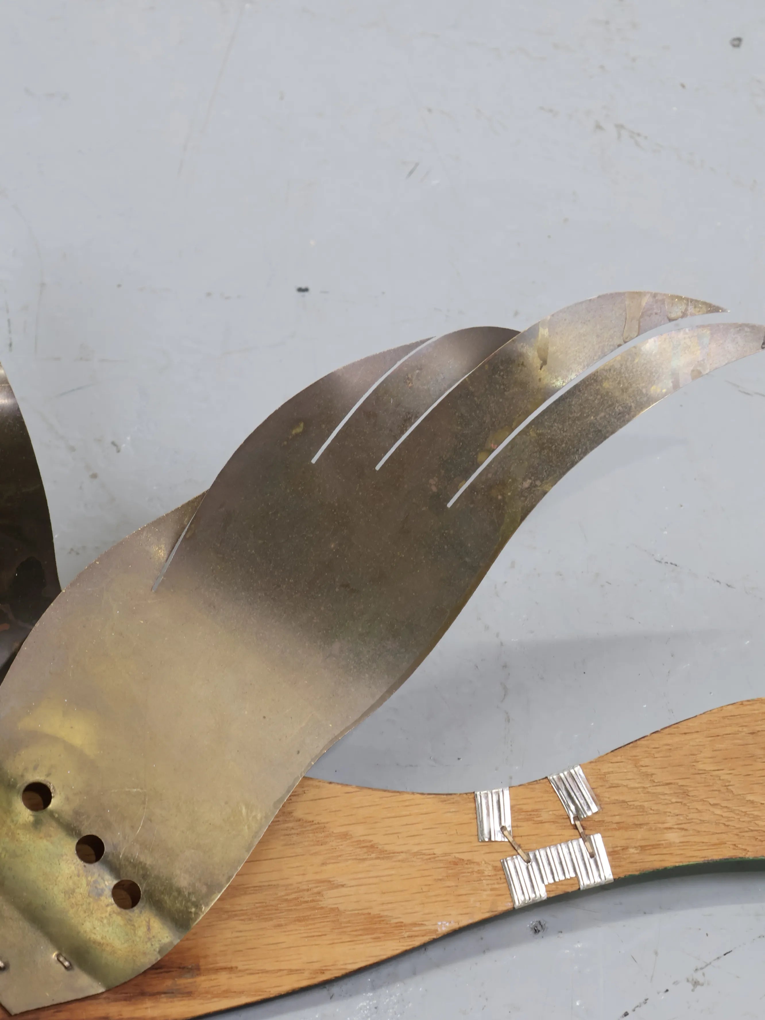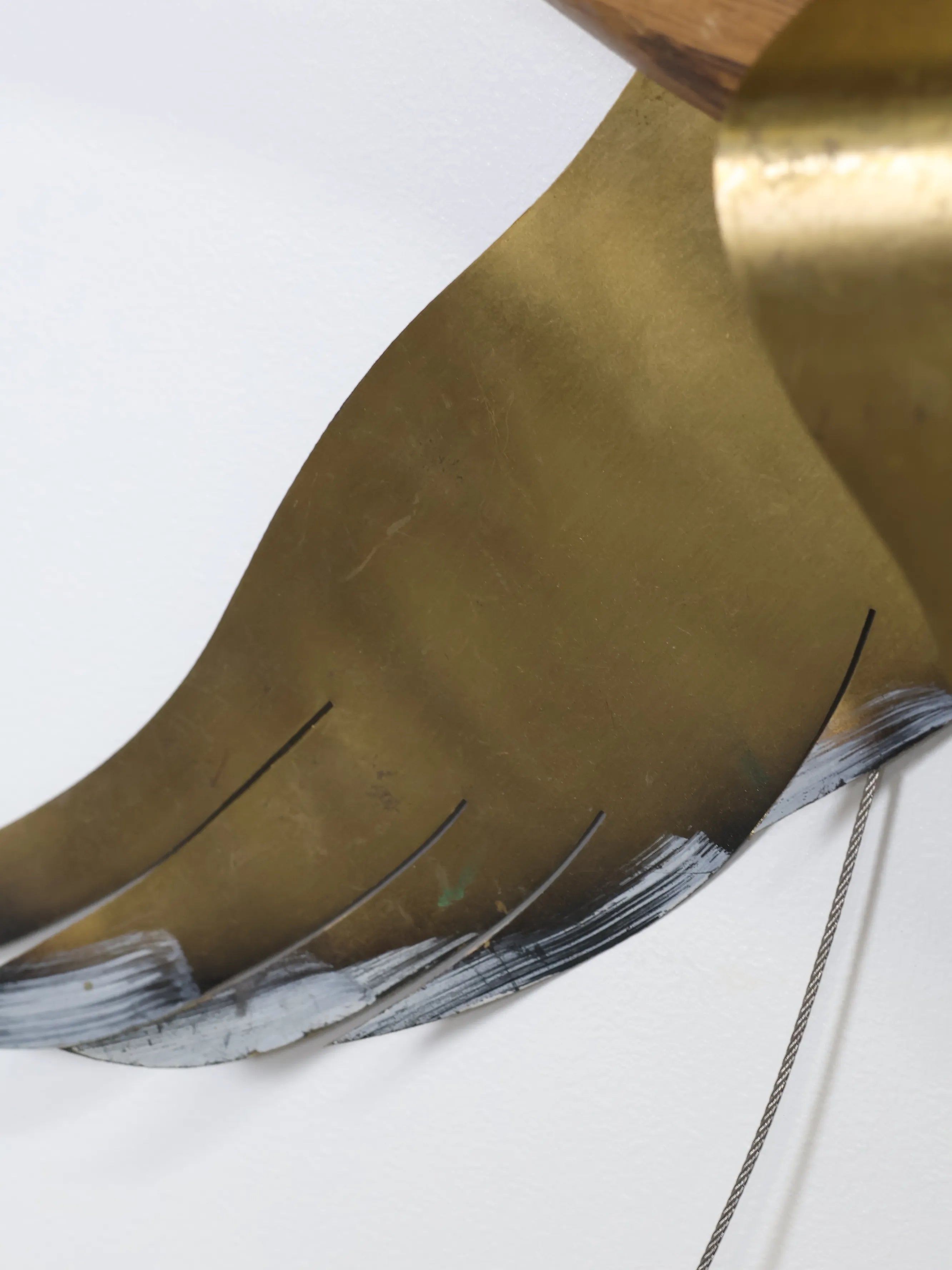 ブラス特有の落ち着いた輝きと、ウッドの温かみある質感が美しく調和し、壁面に奥行きとリズムを与えてくれます。