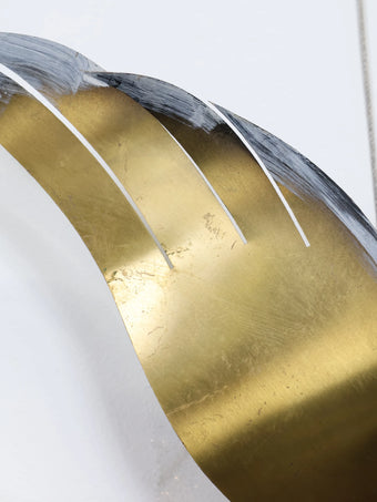 滑らかな曲線を描くウッドベースに、羽ばたく姿を象ったブラスパーツを重ねた立体的な構成。