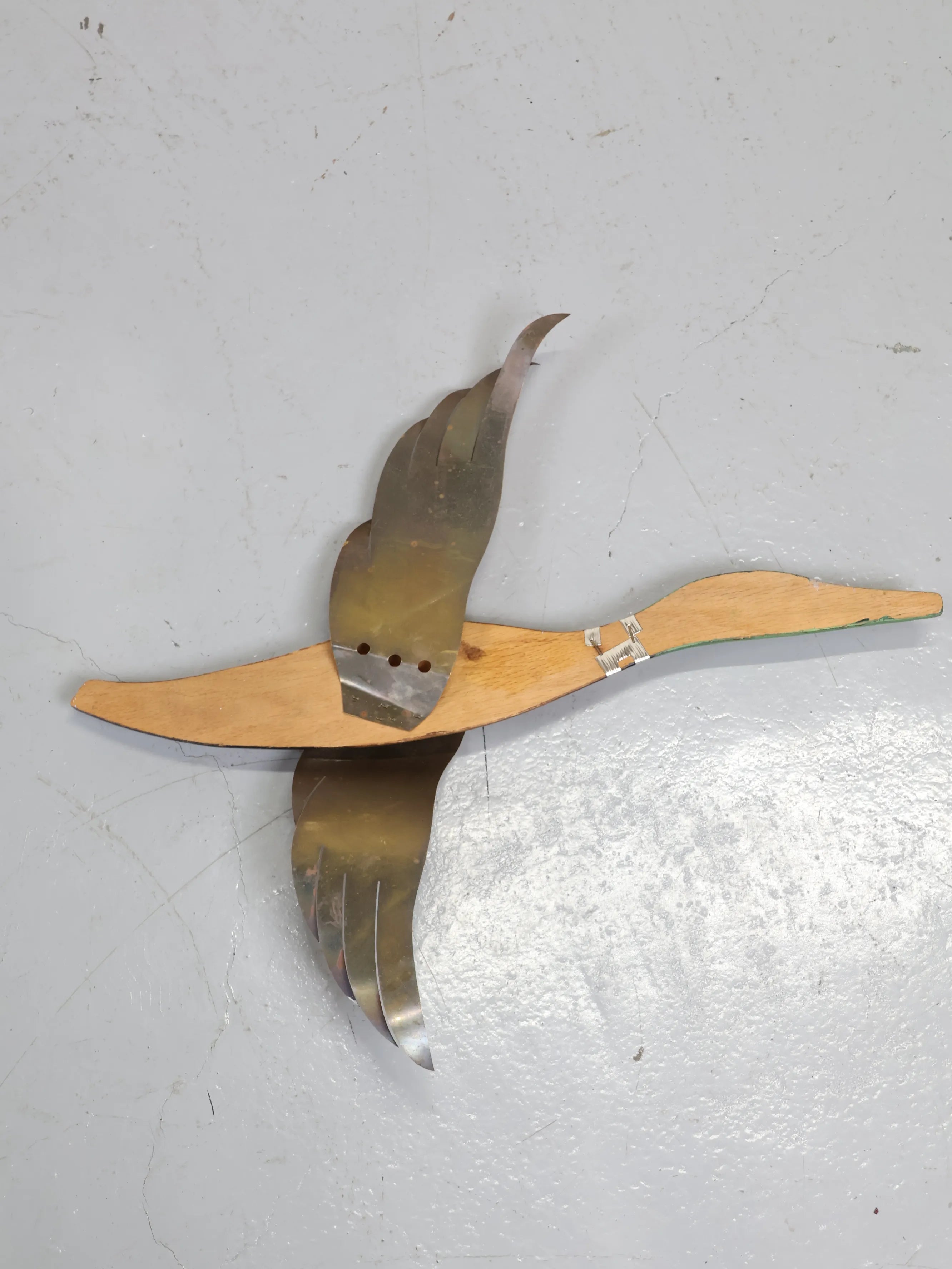 アメリカより買い付けました1960年代のウッド&ブラスフラインググースウォールデコ (3点セット)です。
