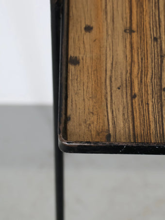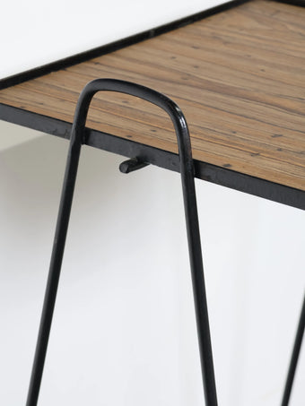 ブラックのスリムなメタルにウッドの天板がアメリカンヴィンテージならではのデザイン。