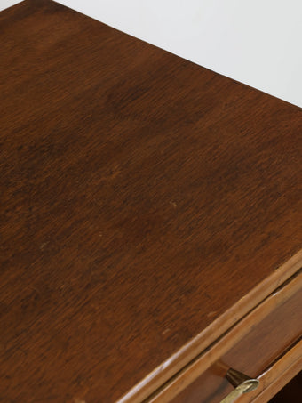 直線的で重厚感のあるシルエットや引き出しの金具の形状などミッドセンチュリー期のアメリカンヴィンテージならではのデザイン。