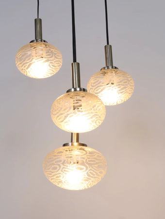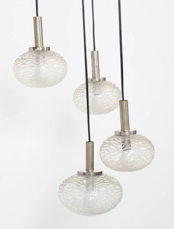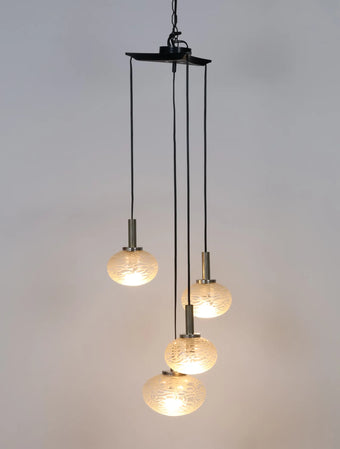 1960 - 70年代 ヴィンテージ ガラスボール 4灯 シャンデリア