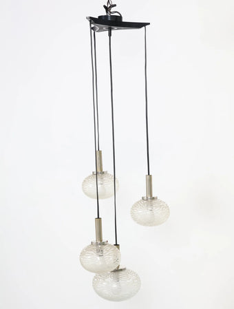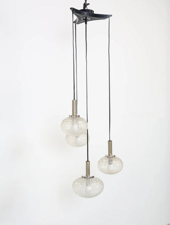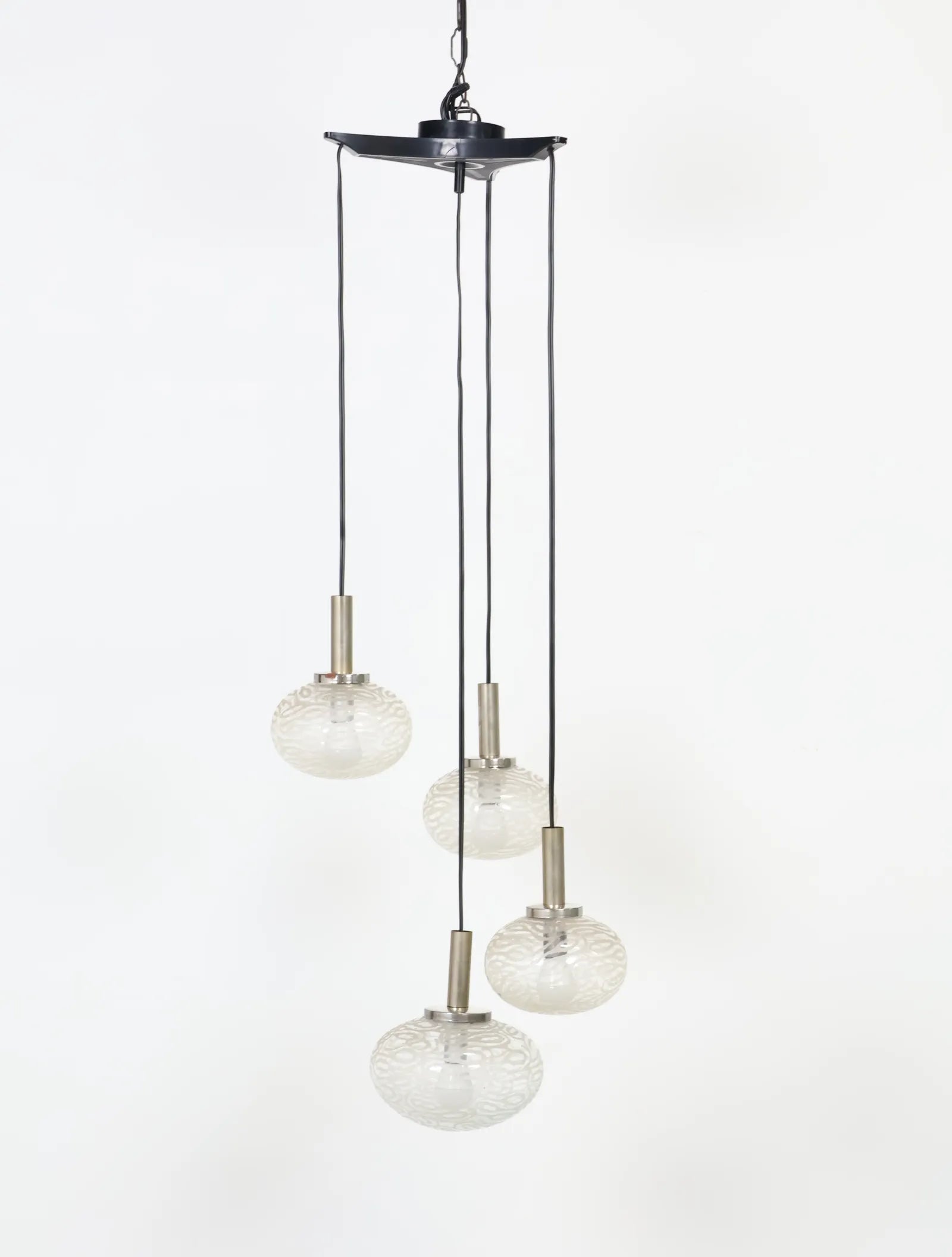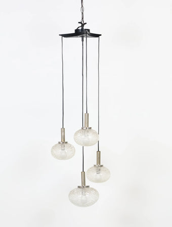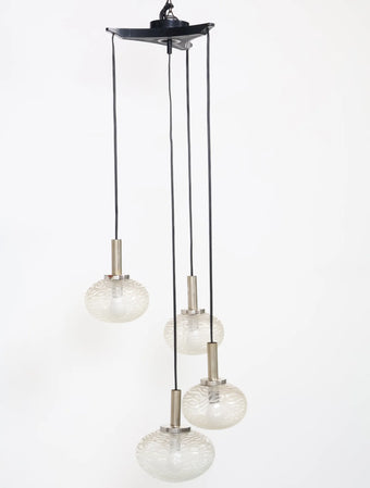 ヨーロッパより買い付けました1960年代-70年代のガラスボール4灯シャンデリアです。