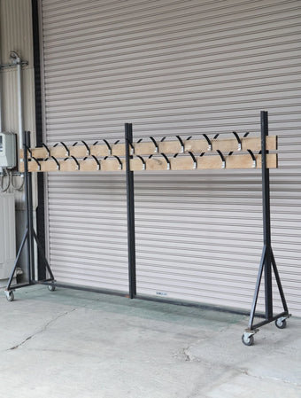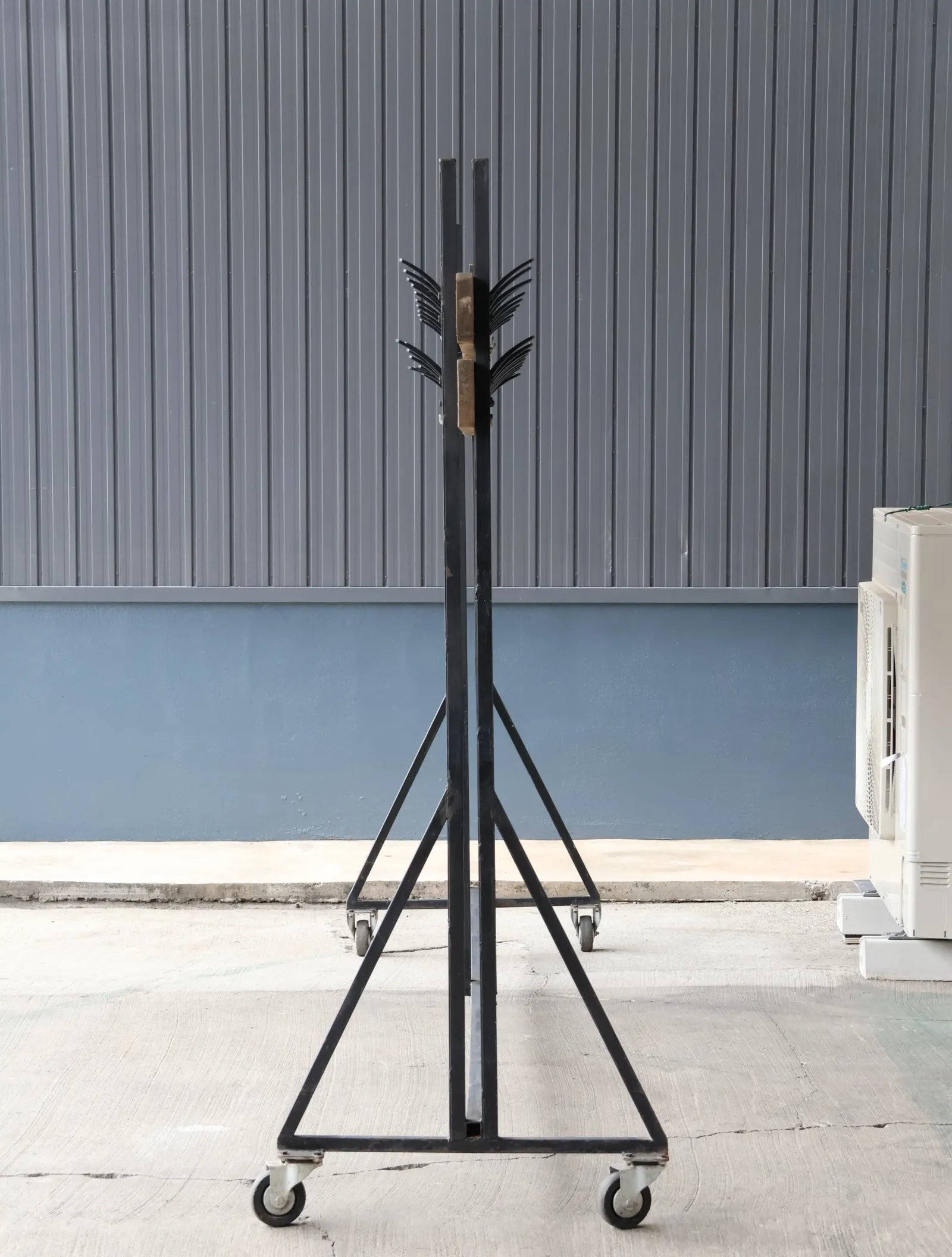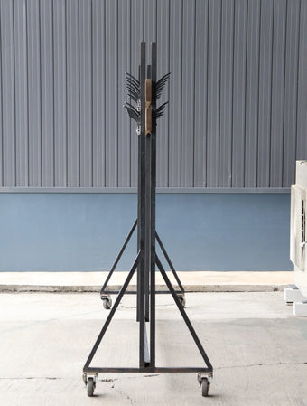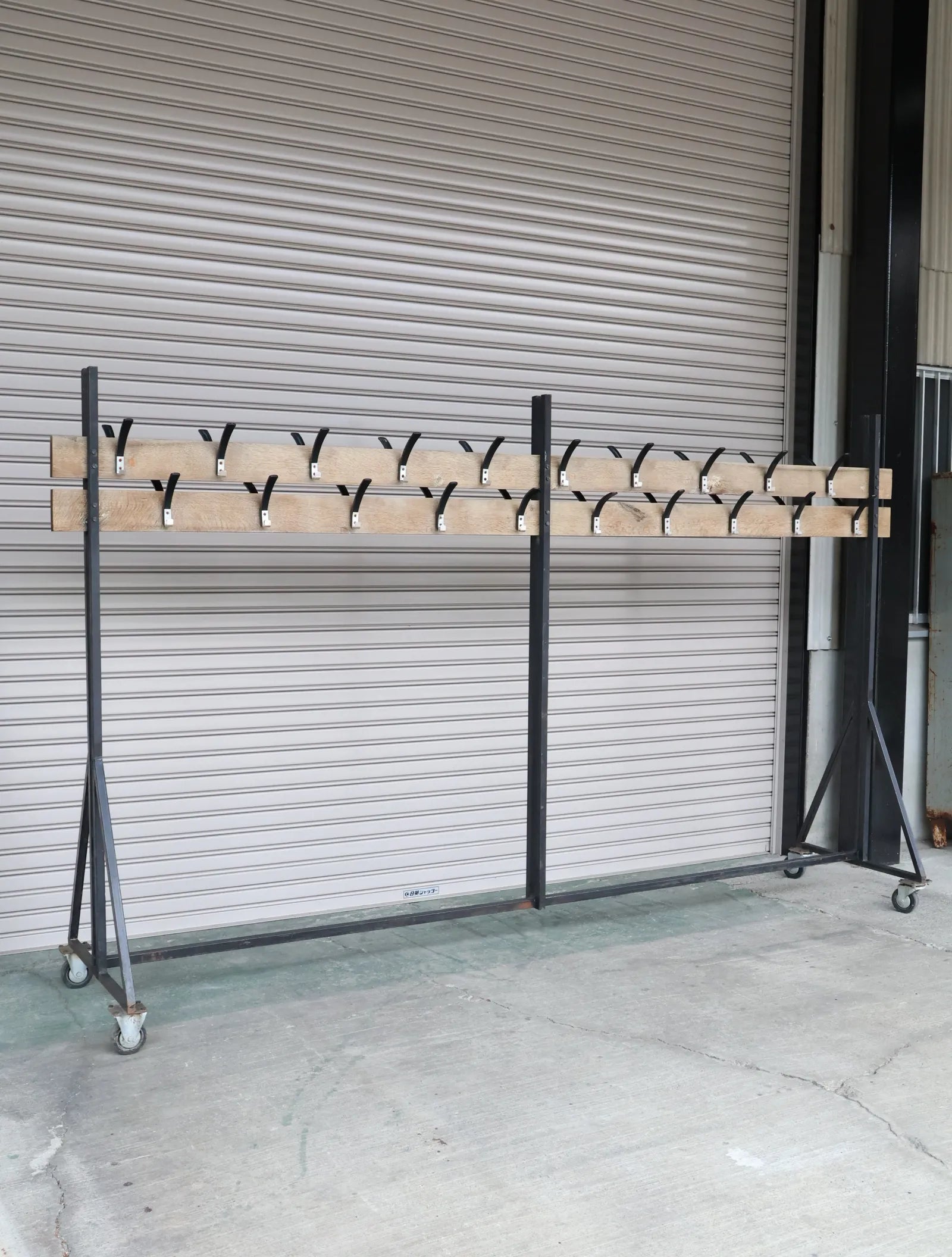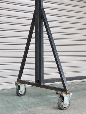 国内ではまず見ることのない大型のハンガーラックとなっており、店舗什器として存在感抜群の一品となっております。