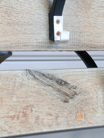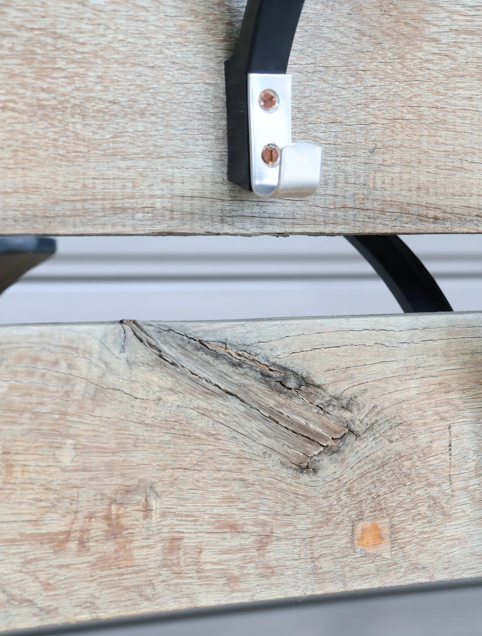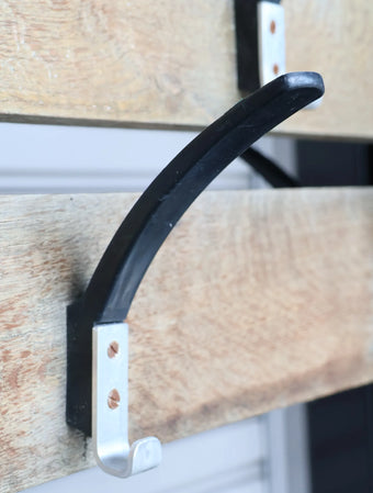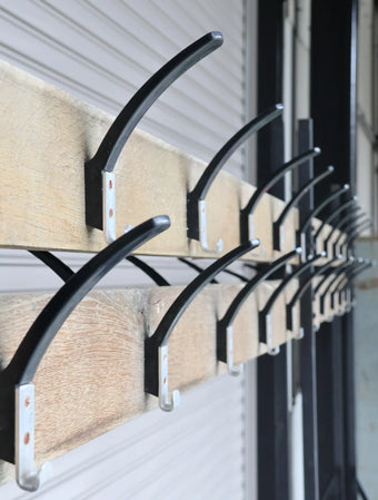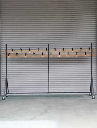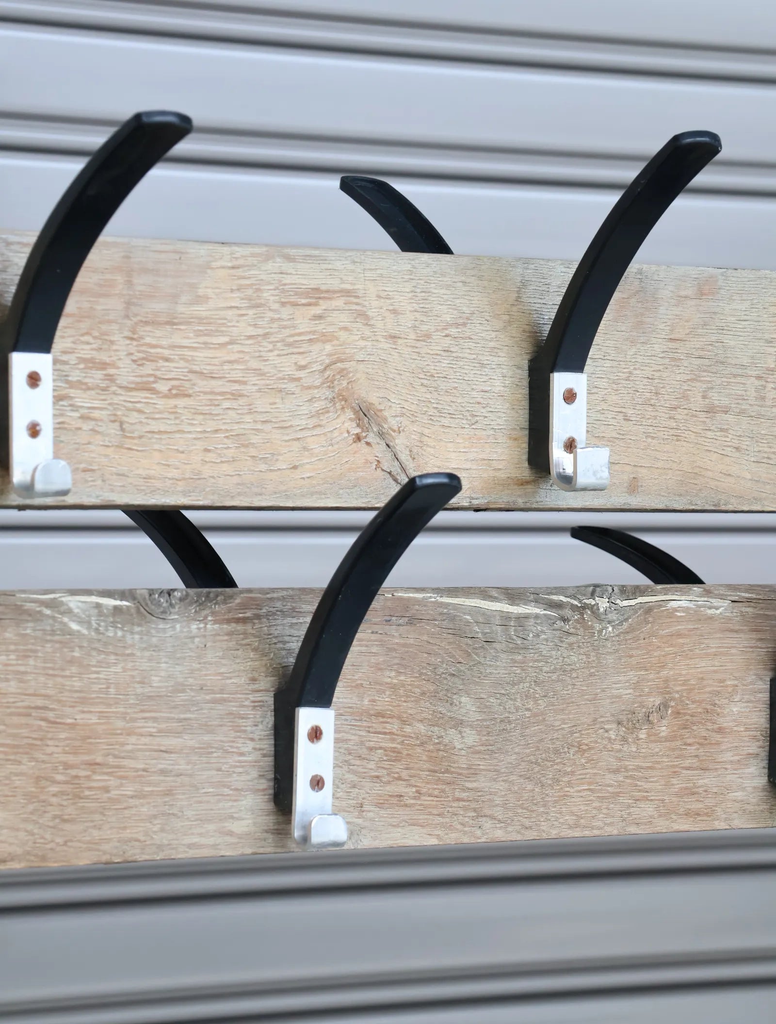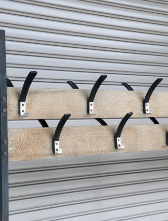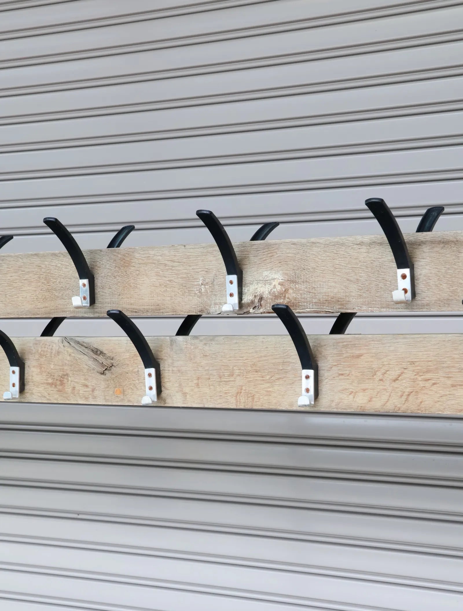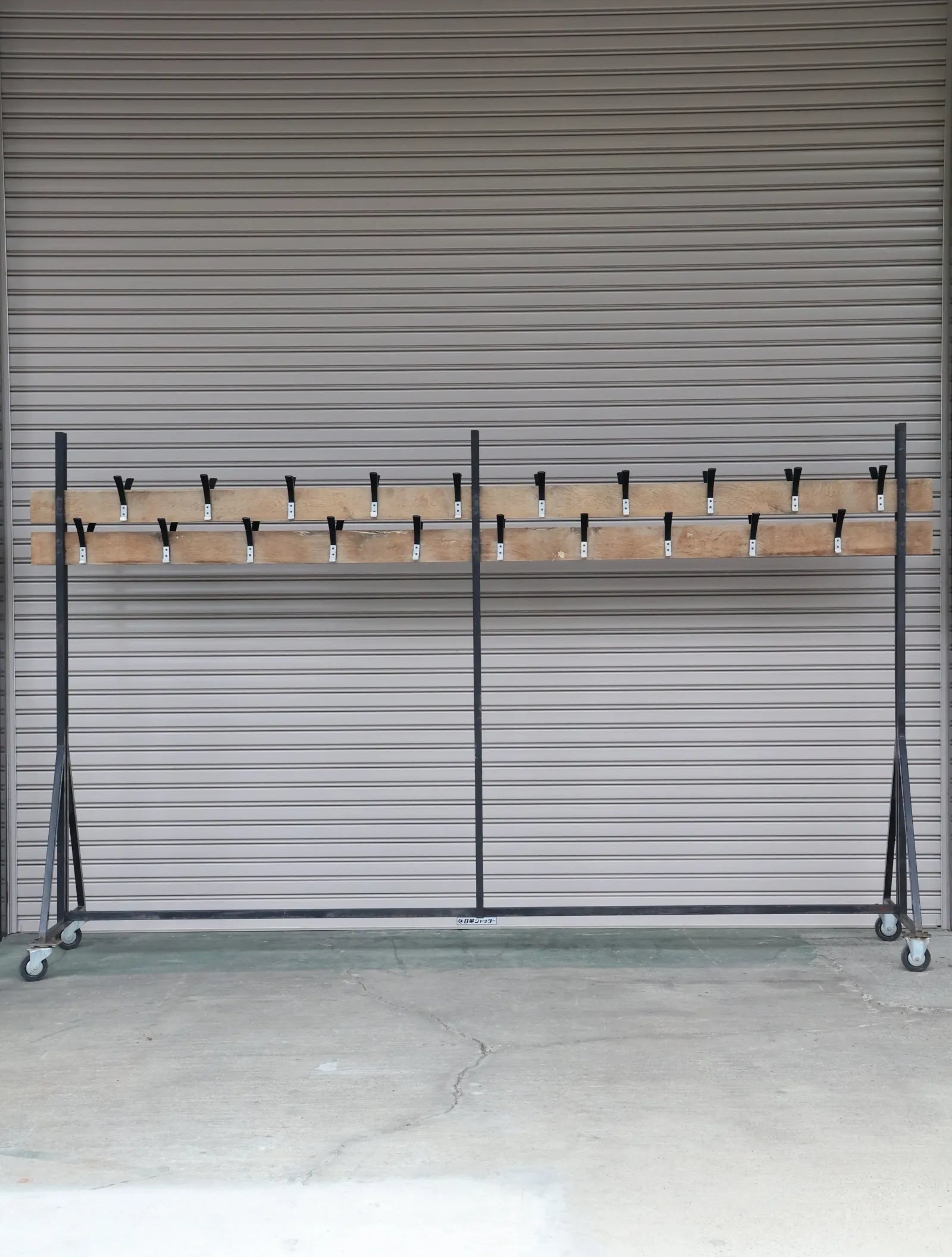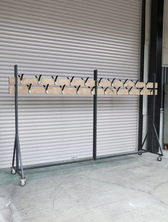 片面に20点のフックが付き、両面合わせて40点のフックが付く大型のヴィンテージコートラック。