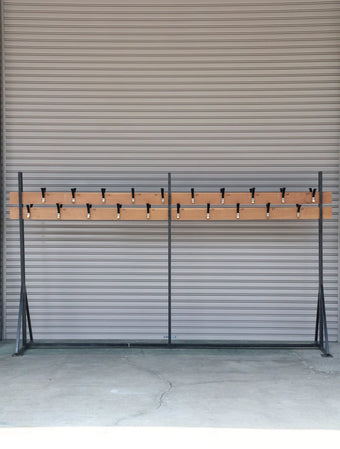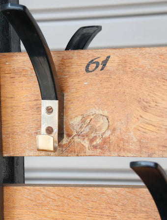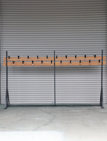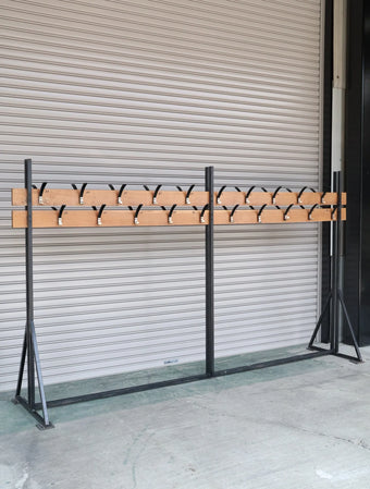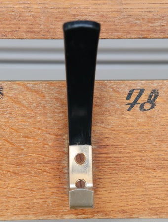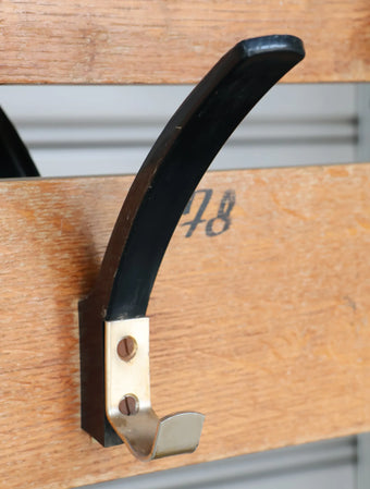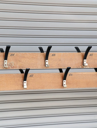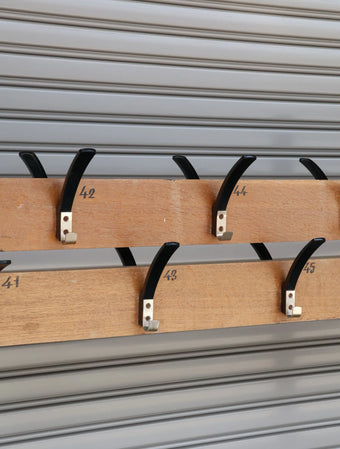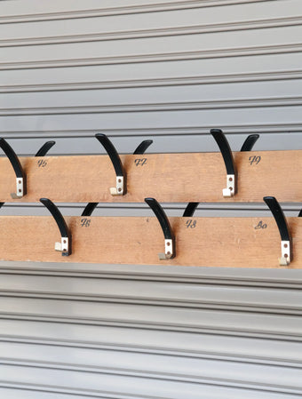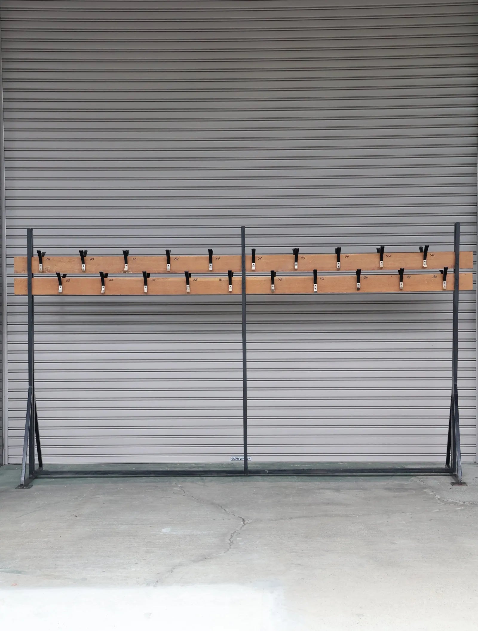 片面に20点のフックが付き、両面合わせて40点のフックが付く大型のヴィンテージコートラック。