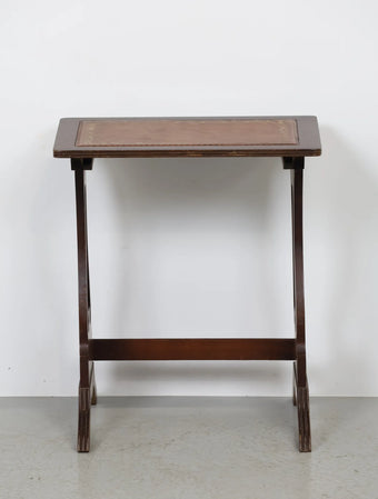ヨーロッパより買い付けました1960年代-1970年代のレザートップ2サイズネスティングサイドテーブルです。